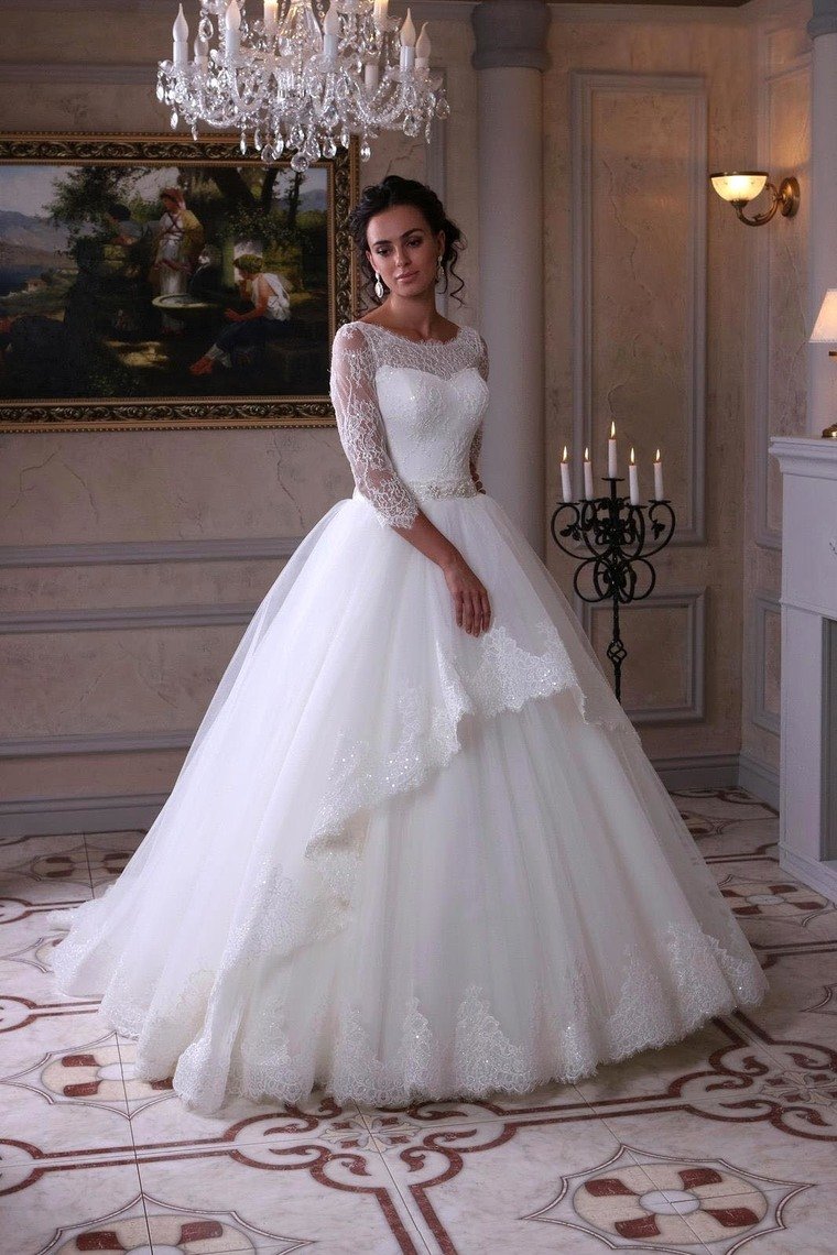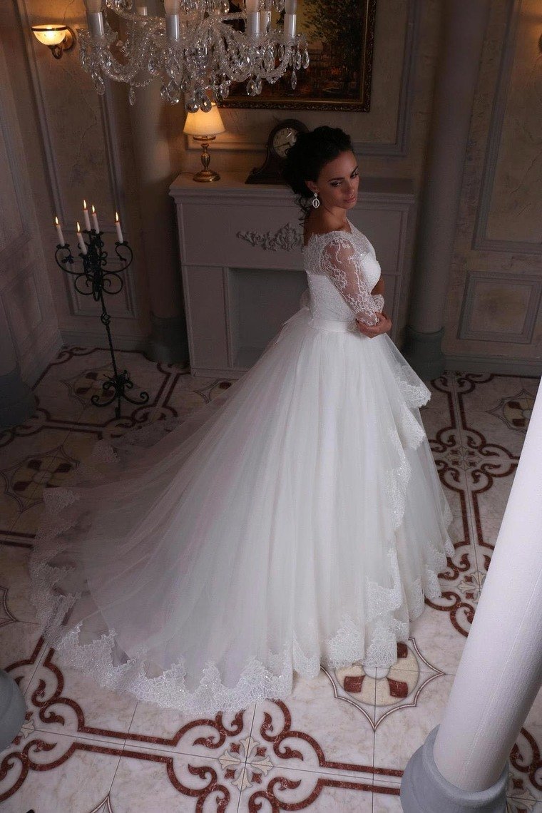 2024 3/4 Length Sleeve Wedding Dresses Ball Gown Tulle With Applique Sweep Train