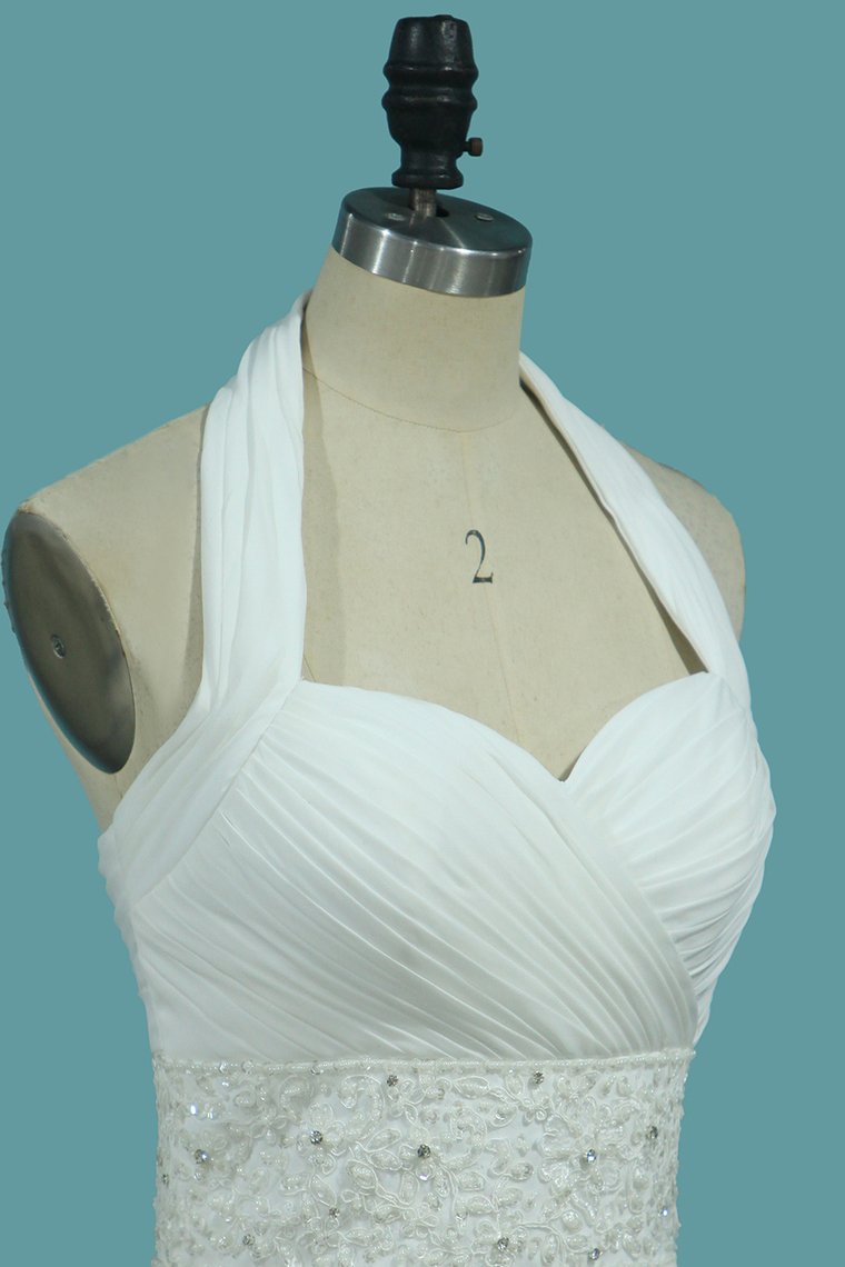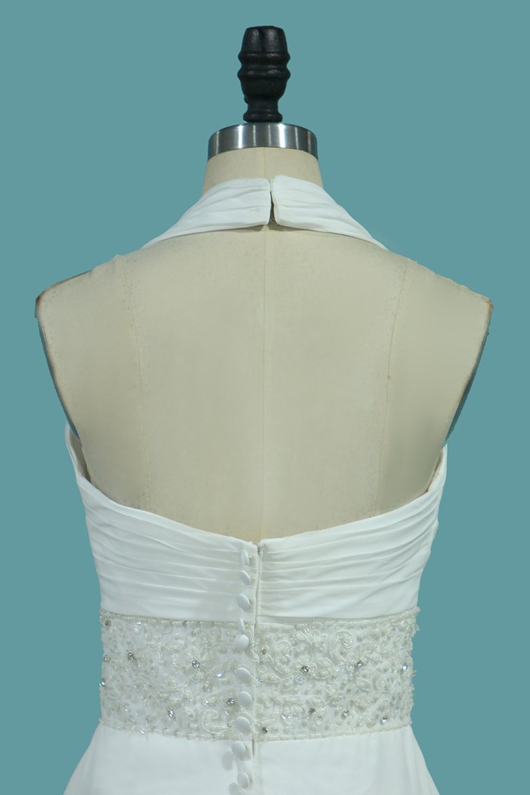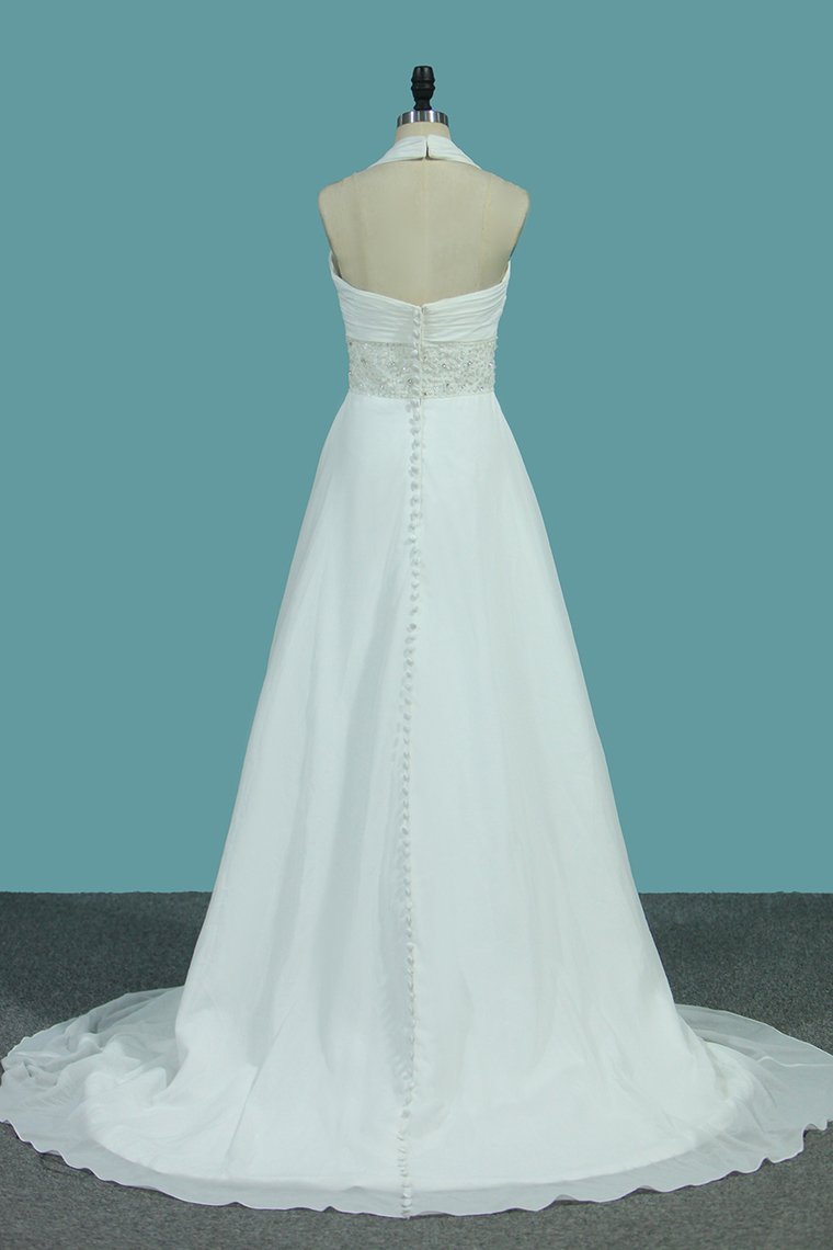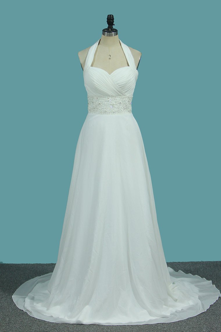 2024 A Line Chiffon Wedding Dresses With Beading & Sequince Court Train