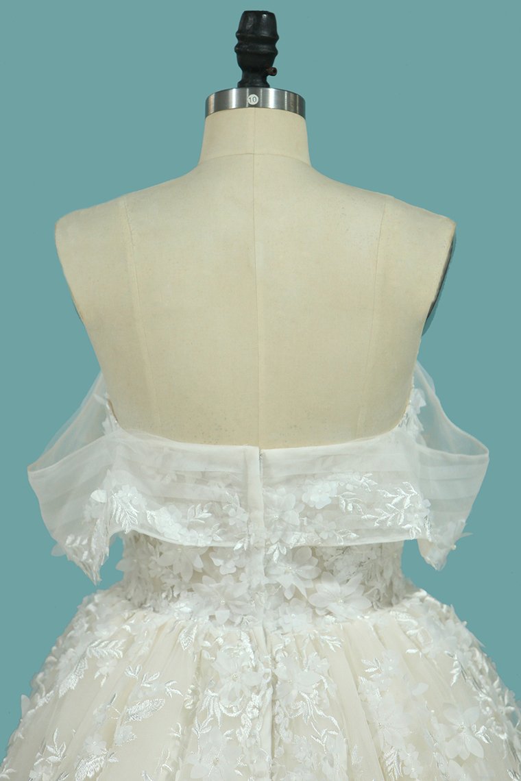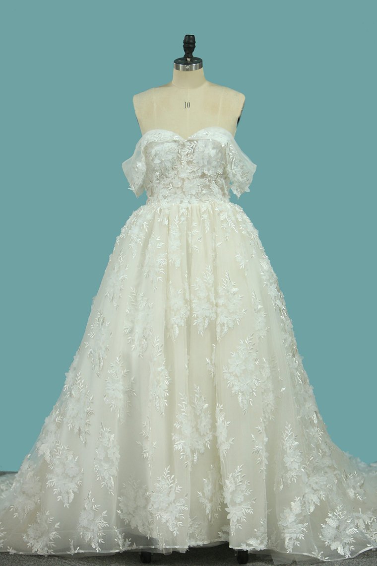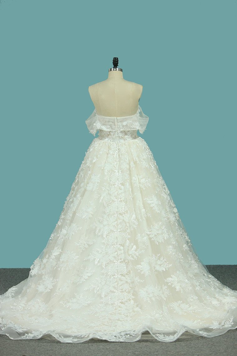 2024 A Line Lace Off The Shoulder Wedding Dresses Chapel Train New Arrival