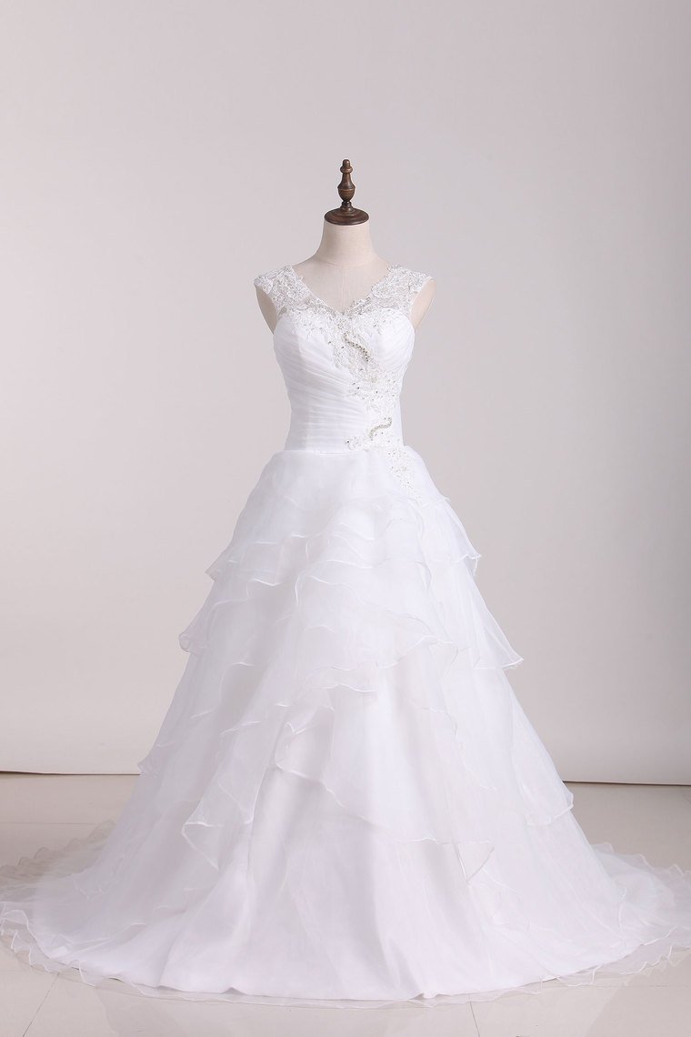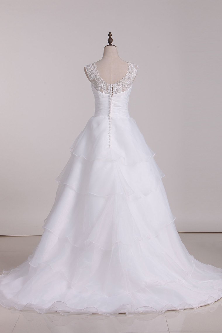 2024 A Line Off The Shoulder Organza Beads & Applique Wedding Dresses