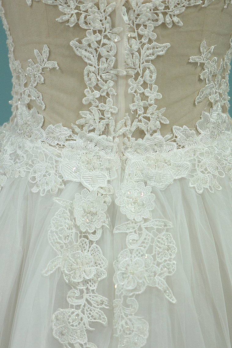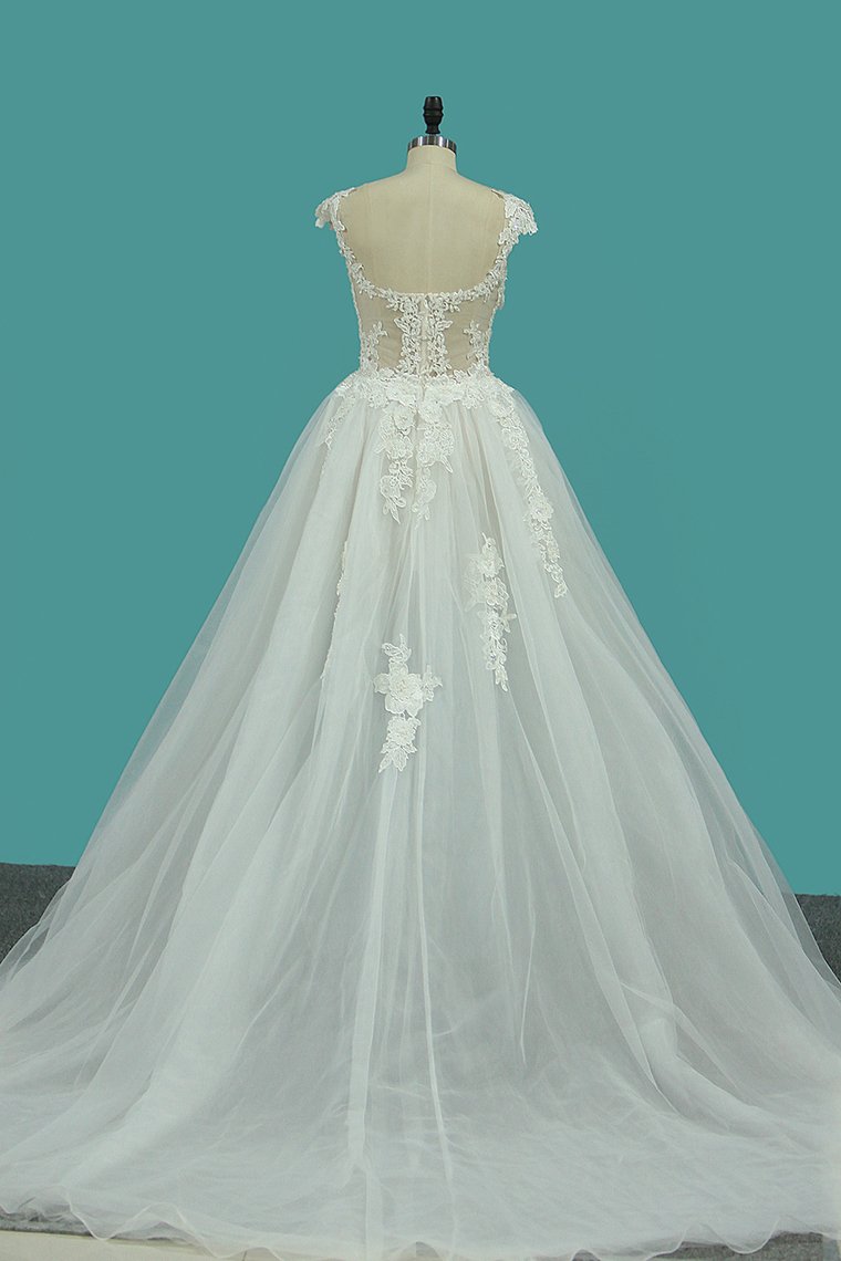 2024 A Line Off The Shoulder Tulle Wedding Dresses With Applique