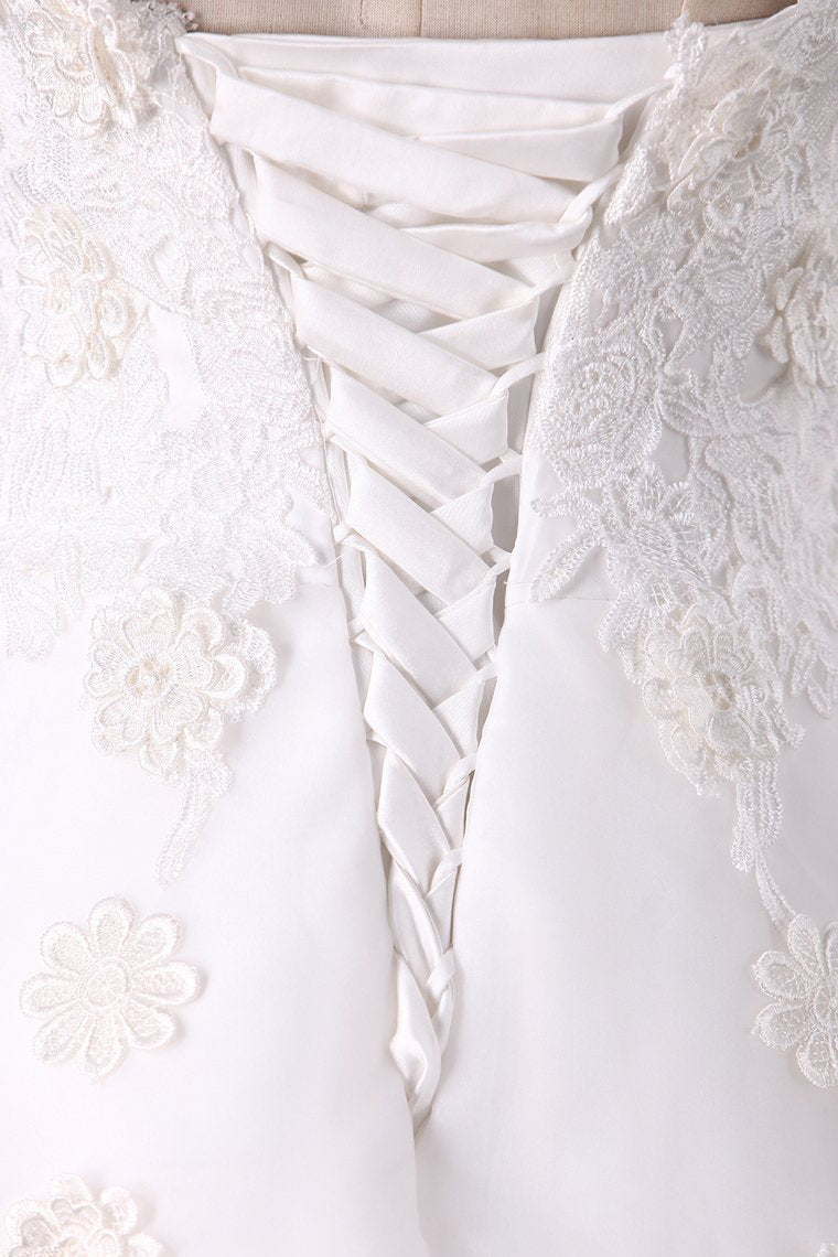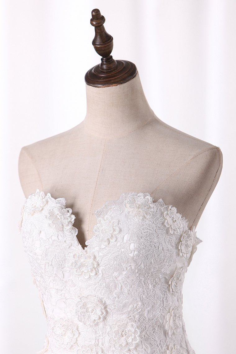 2024 A Line Organza Wedding Dresses Sweetheart With Handmade Flowers