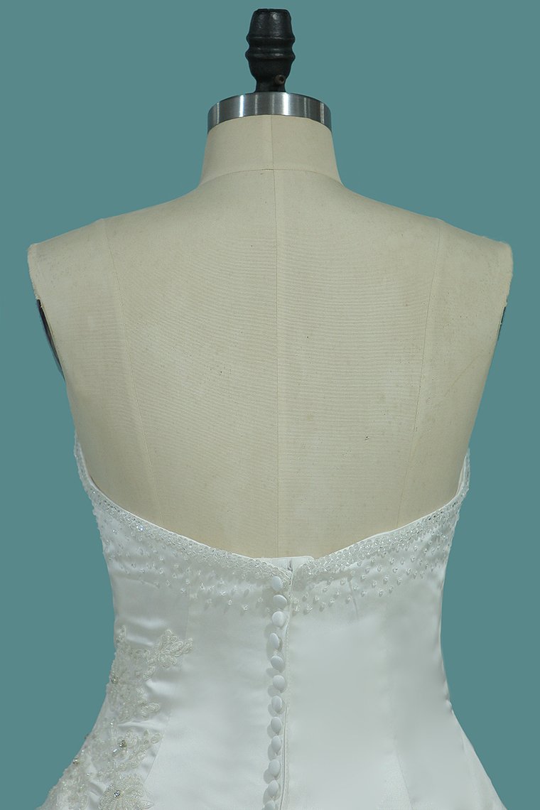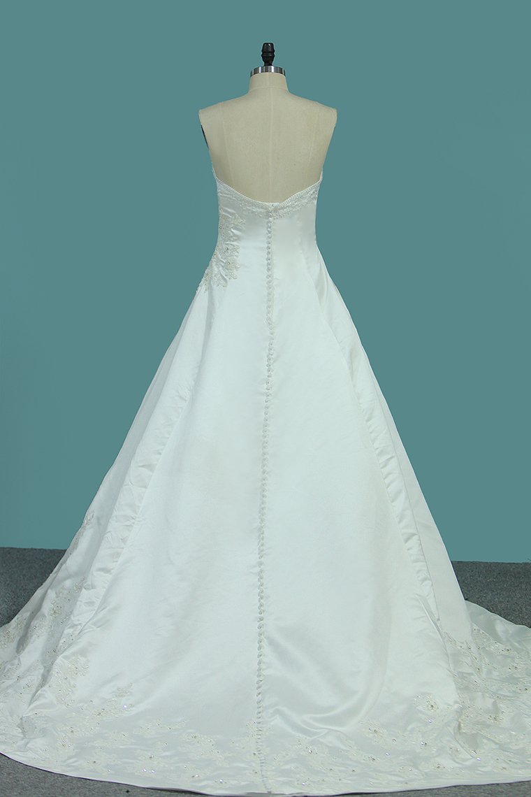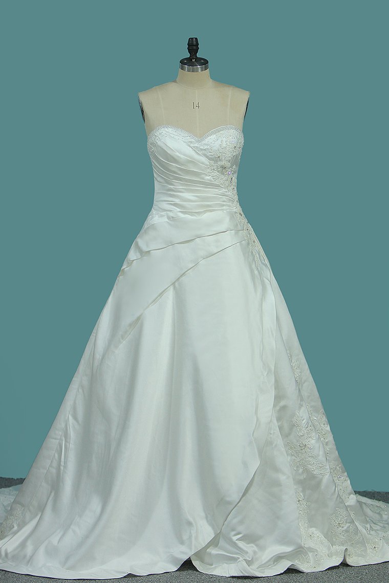 2024 A Line Satin Sweetheart Wedding Dresses With Applique And Beads