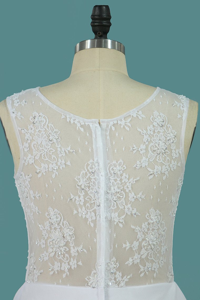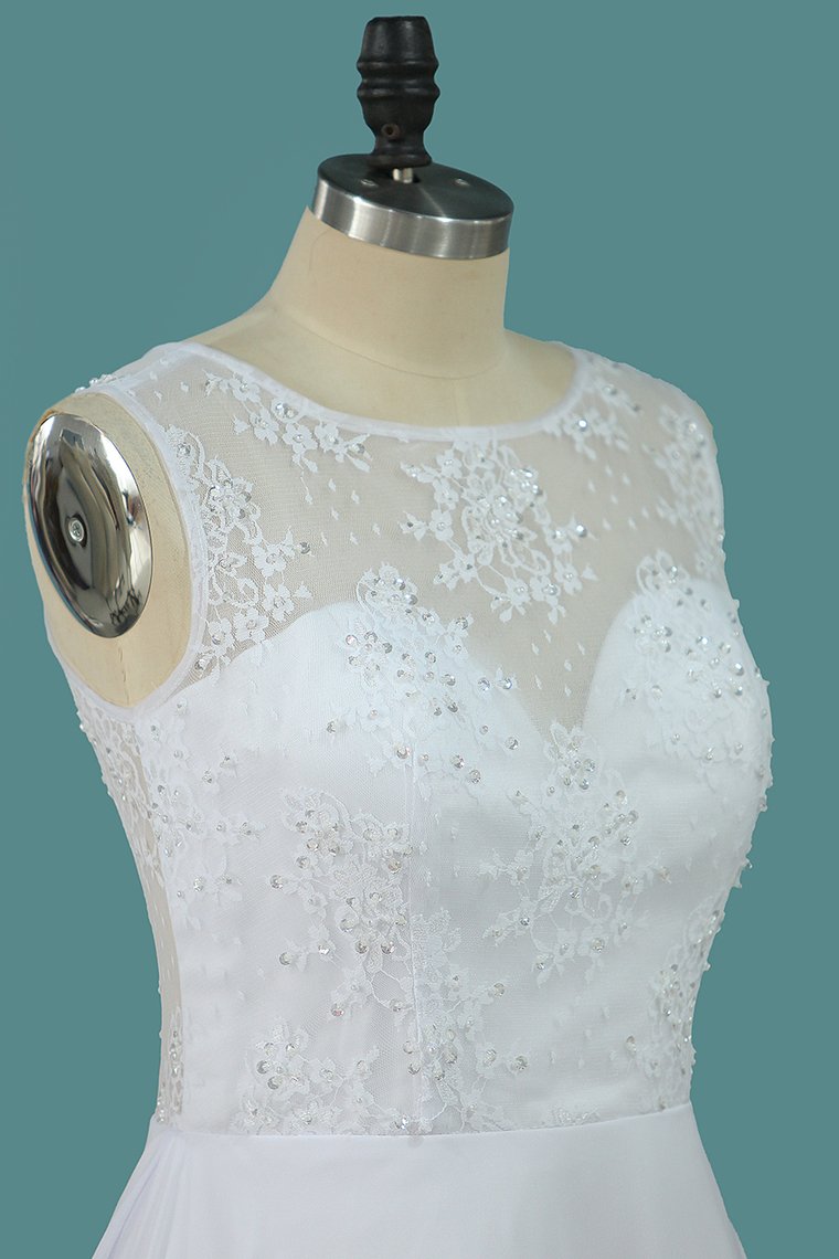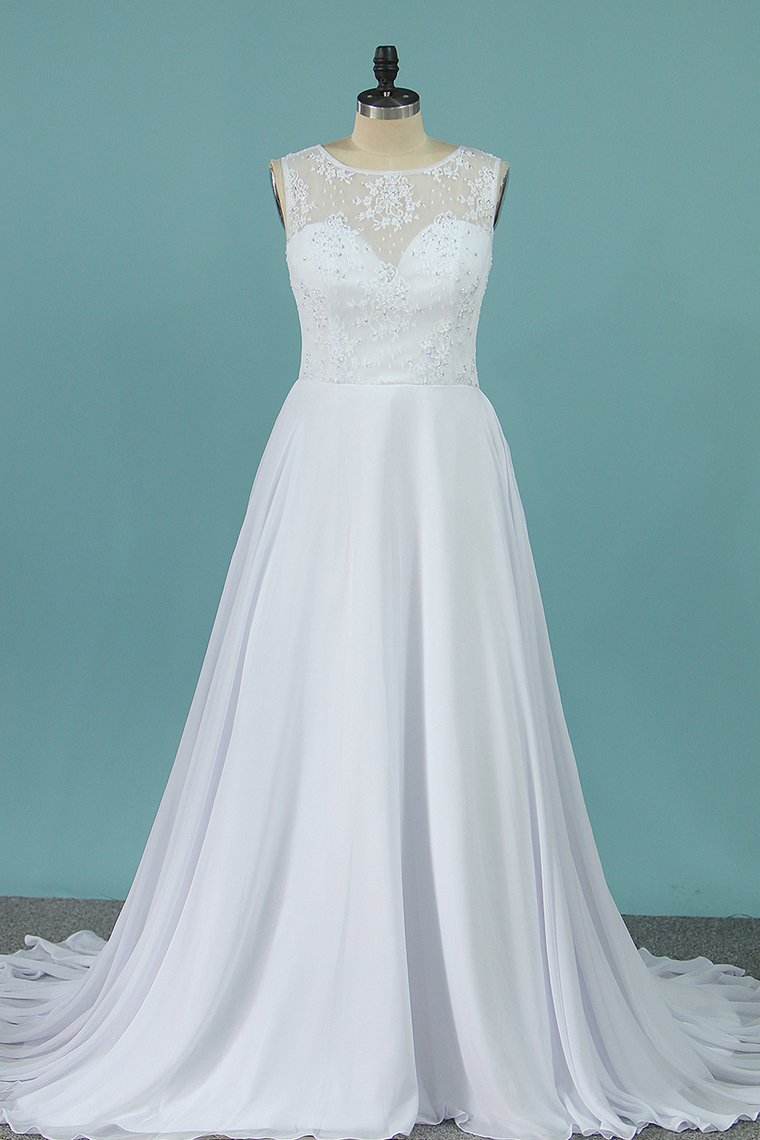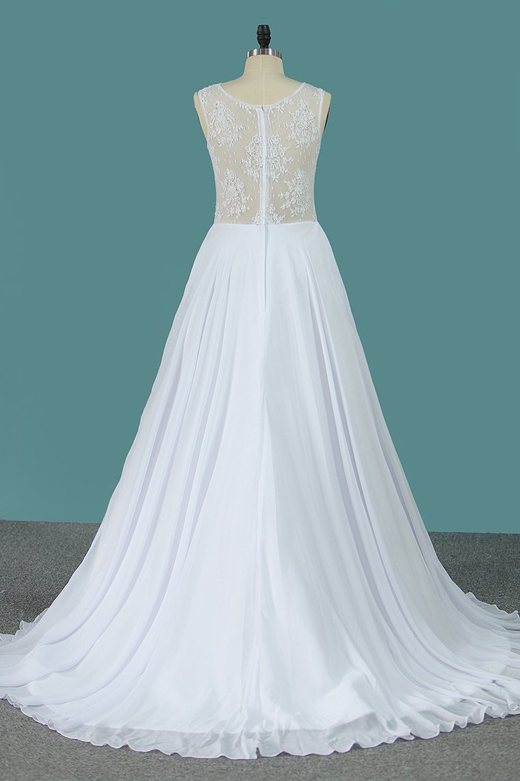 2024 A Line Scoop Chiffon Wedding Dresses With Applique Sweep Train