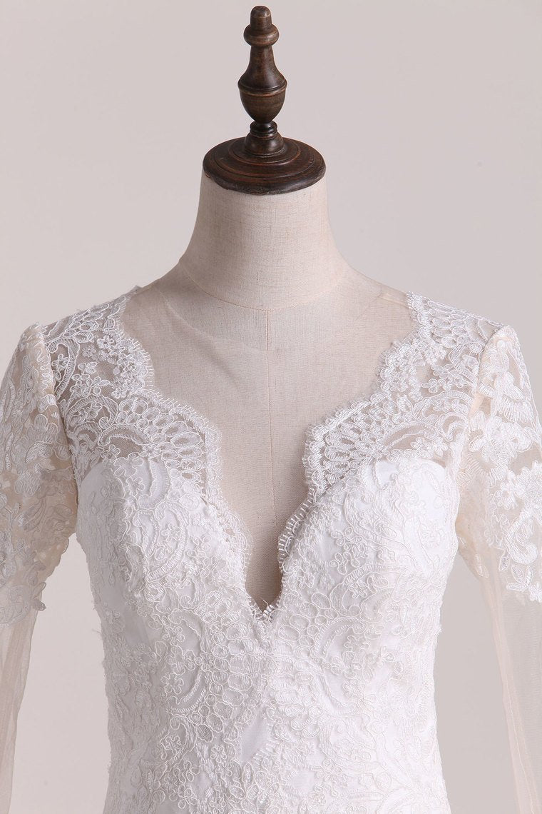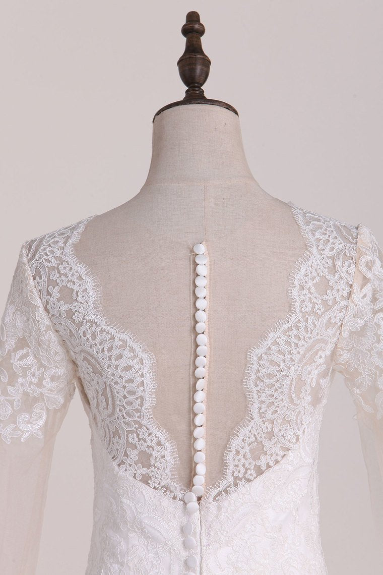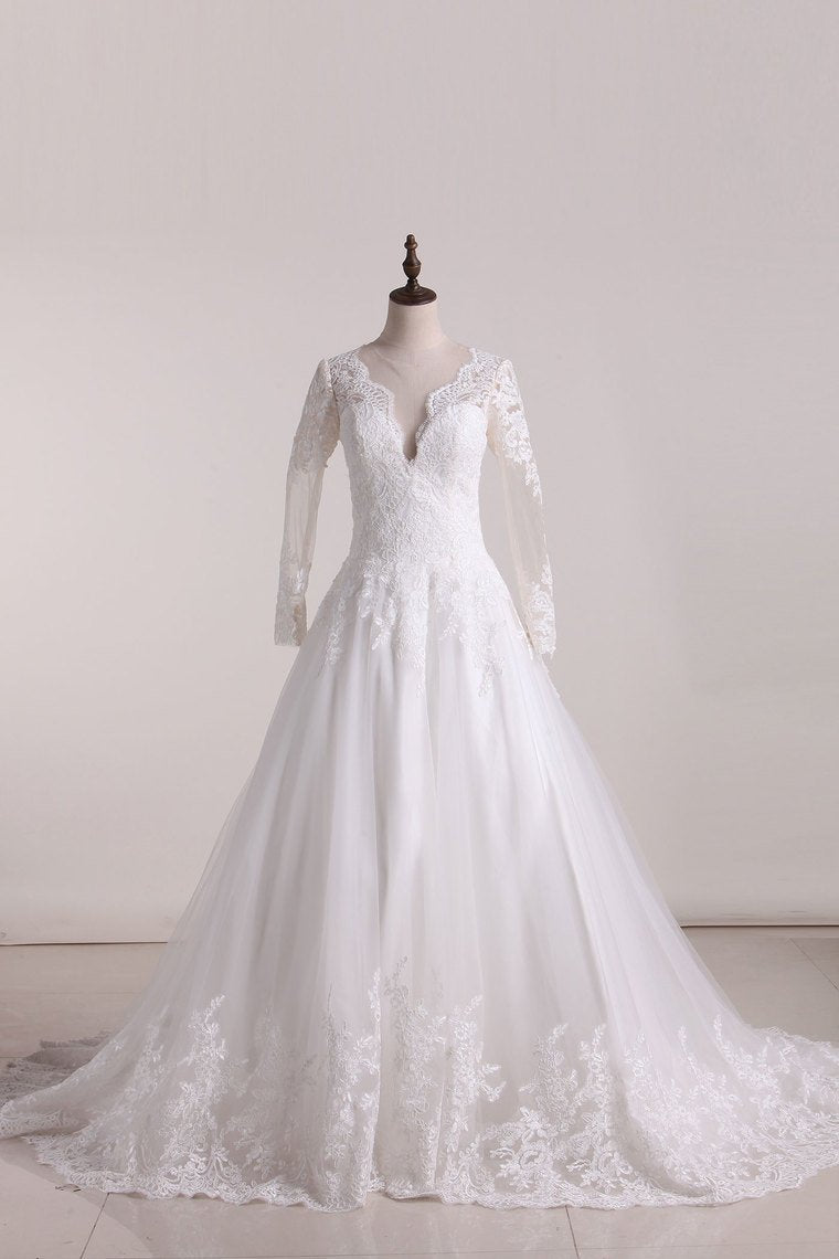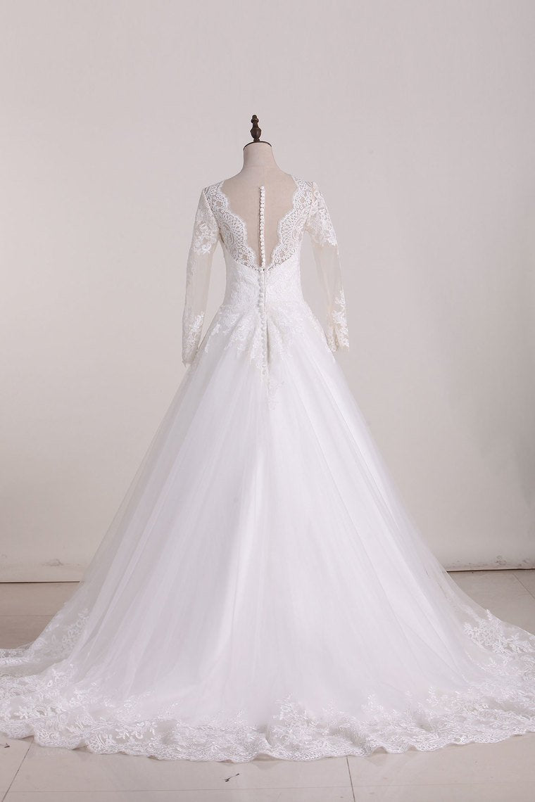 2024 A Line Scoop Long Sleeves Wedding Dresses Tulle With Applique