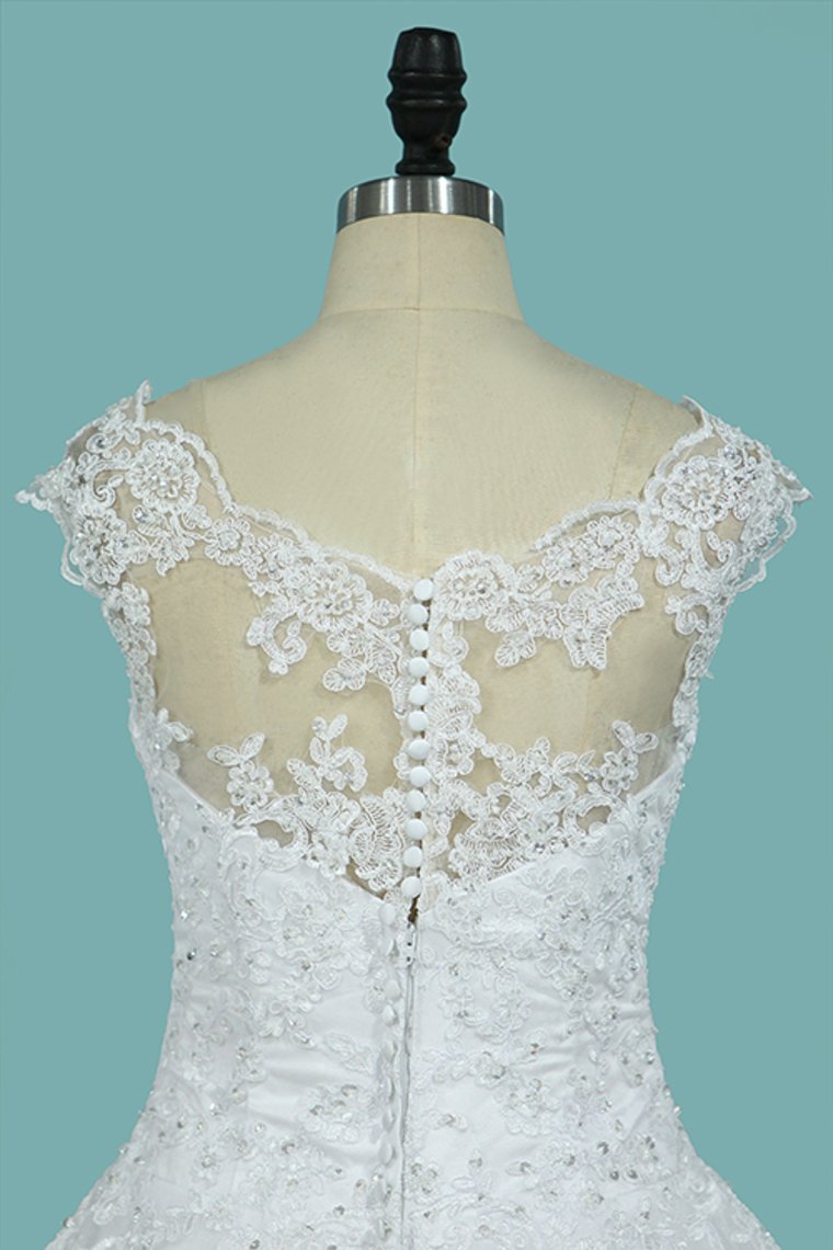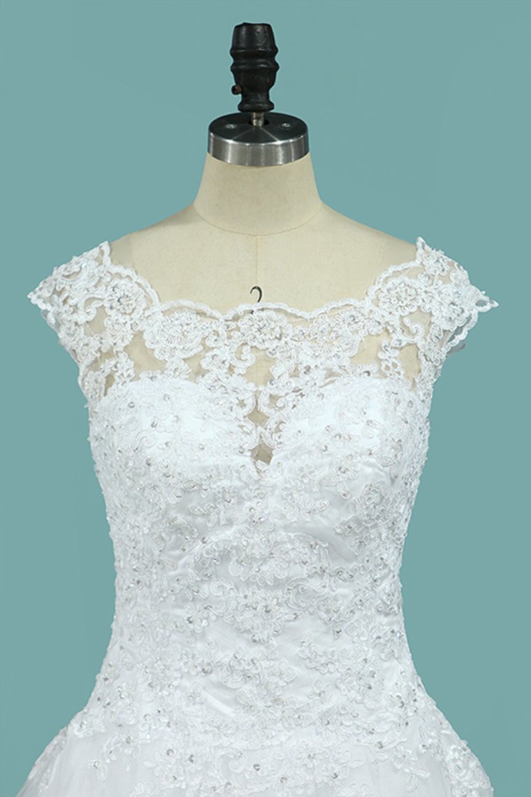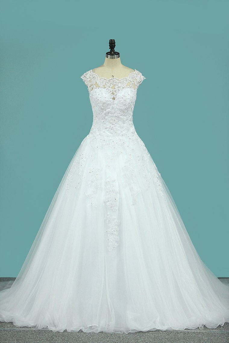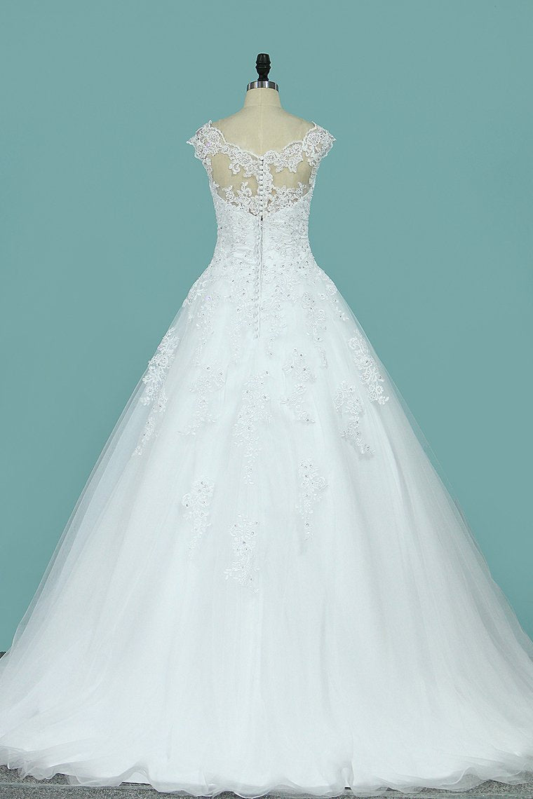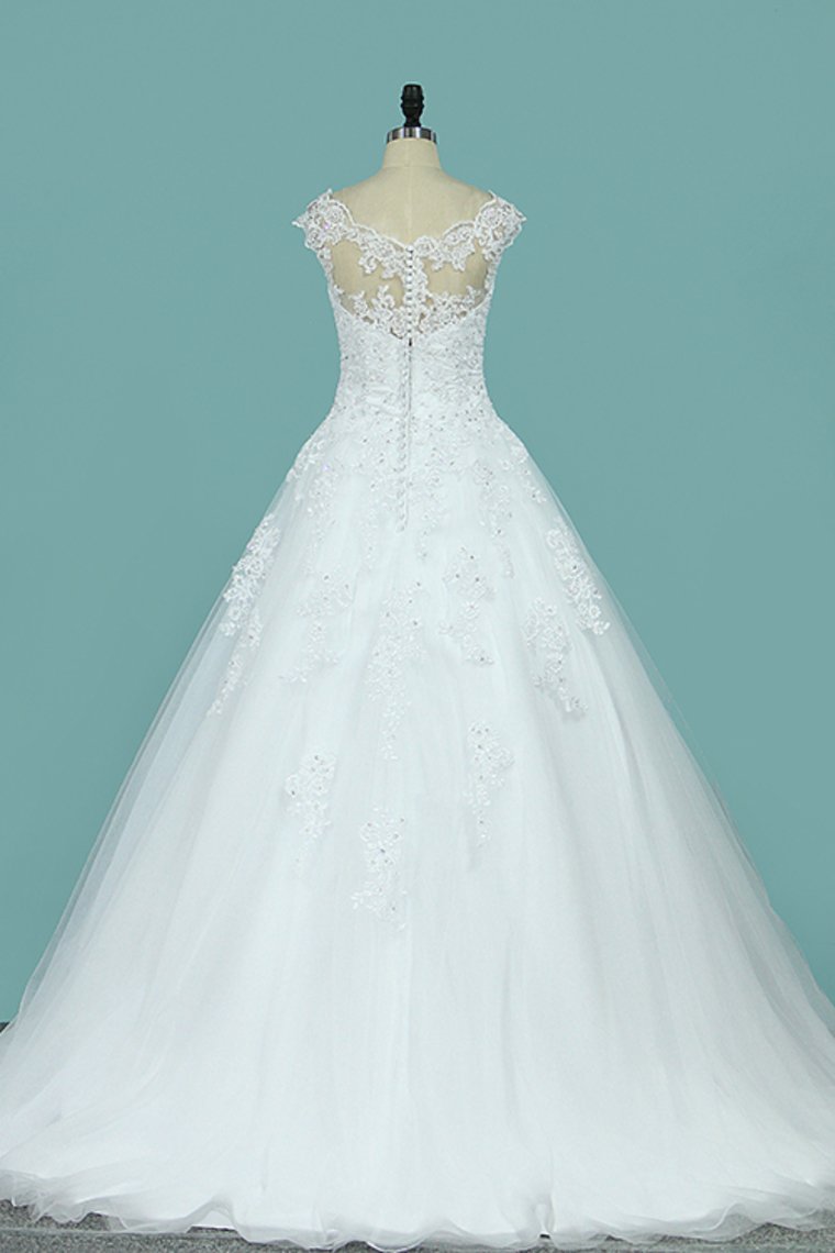 2024 A Line Scoop Tulle With Applique Wedding Dresses Court Train