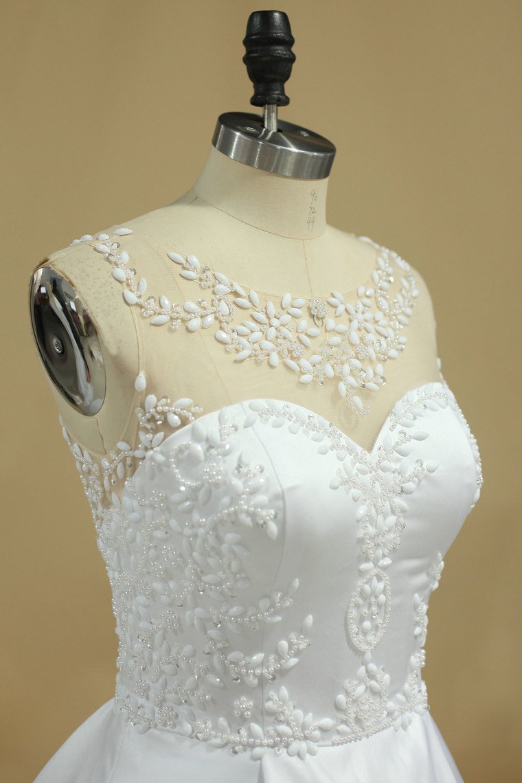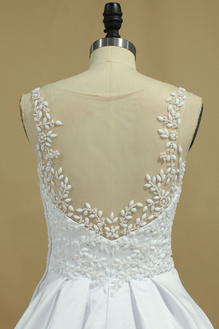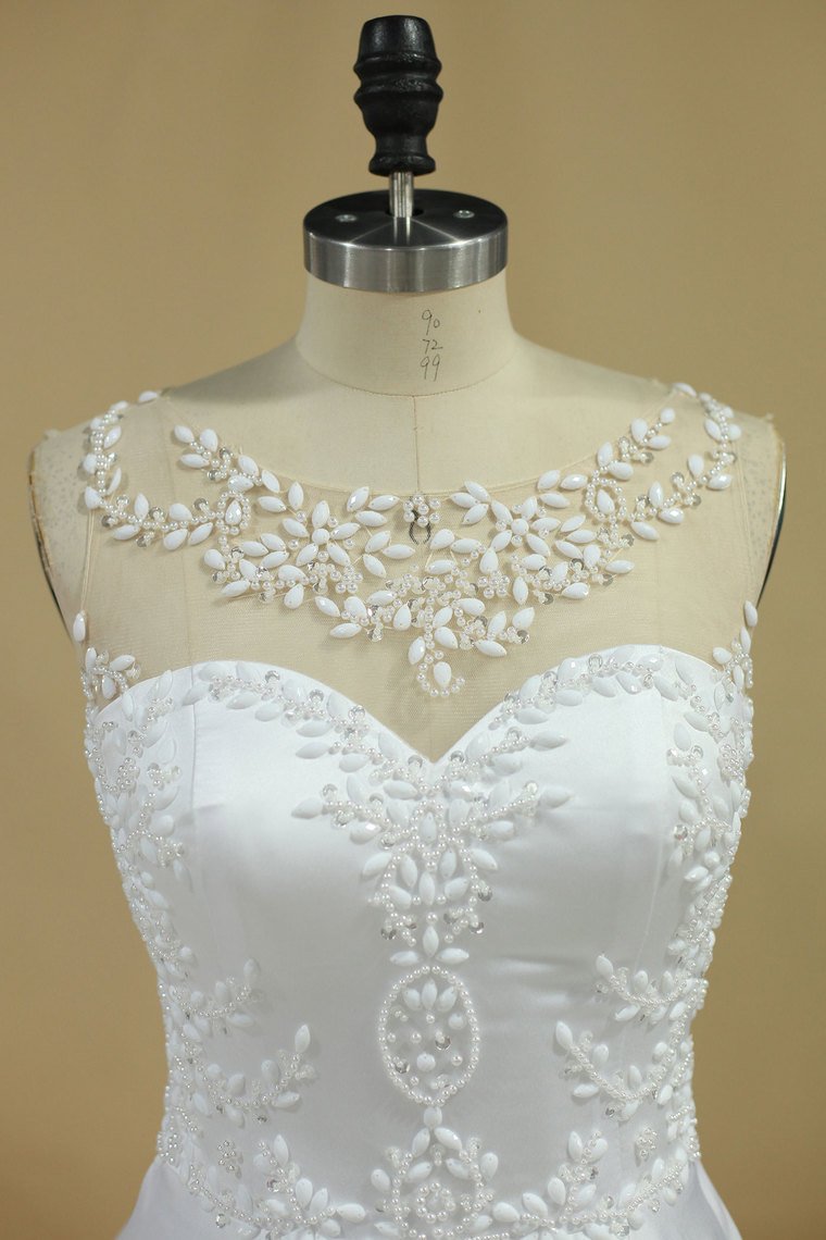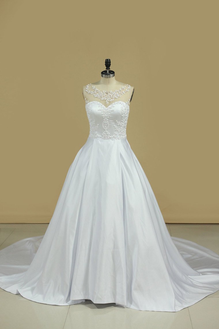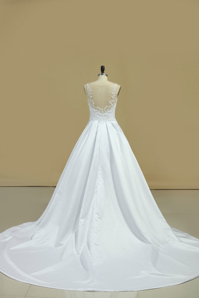 2024 A Line Scoop Wedding Dresses Satin With Beading Chaple Train