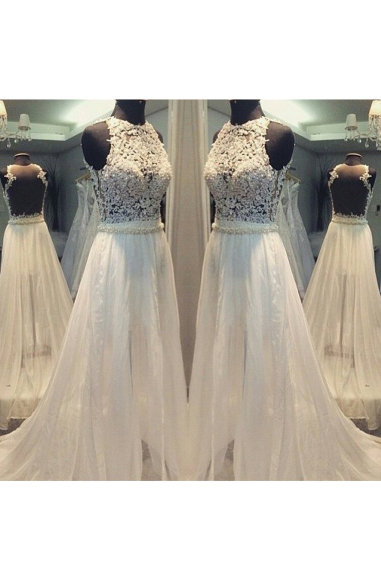 2024 A Line Scoop With Applique Wedding Dresses Chiffon Sweep Train