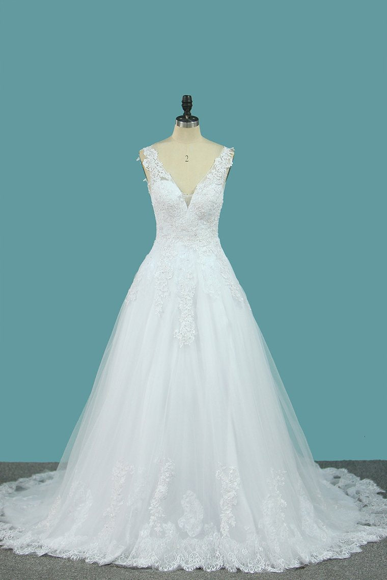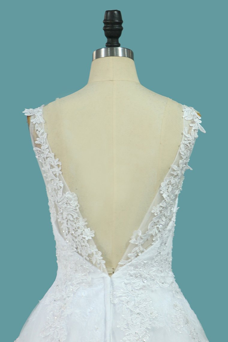 2024 A Line Spaghetti Straps With Applique Sexy Open Back Wedding Dresses