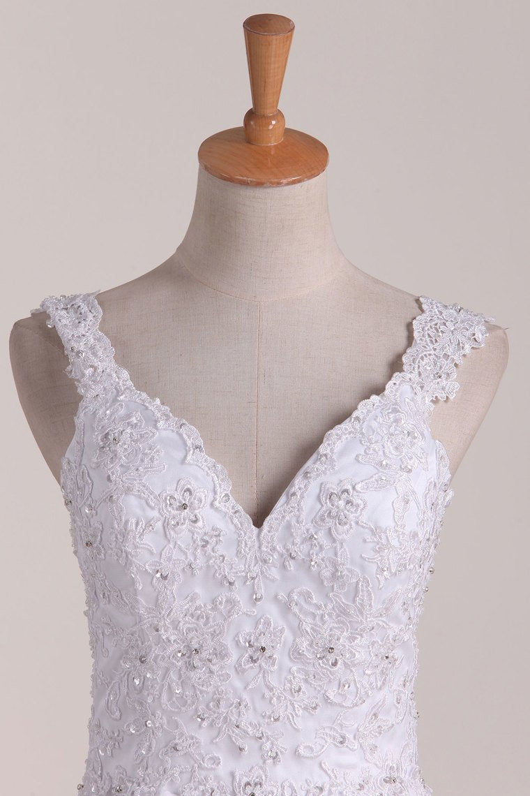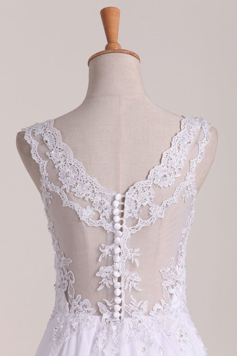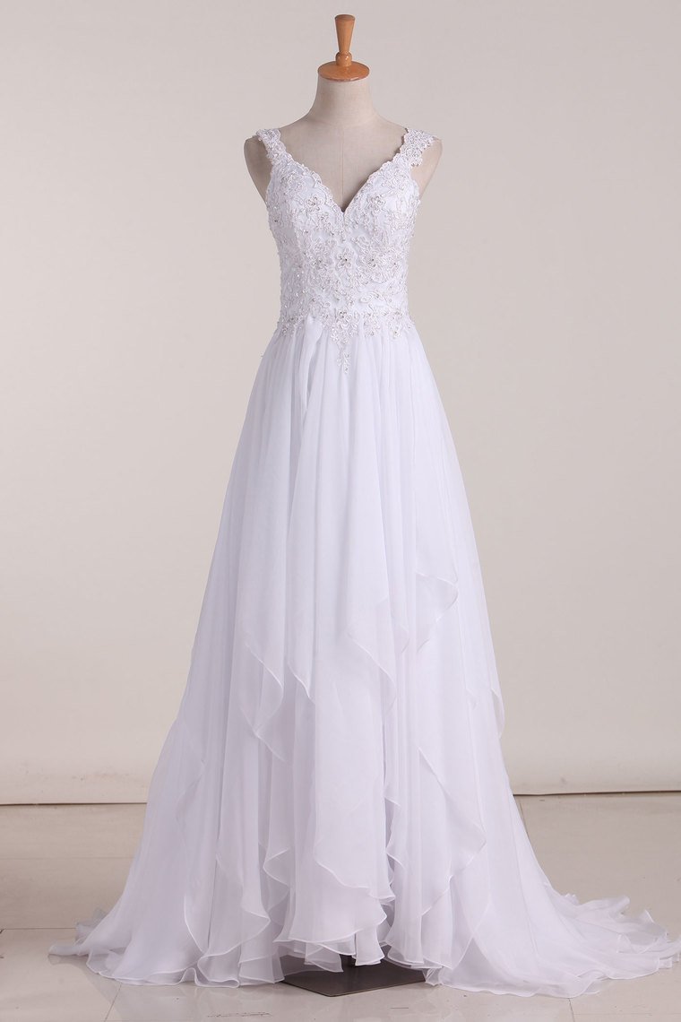 2024 A Line Straps With Applique Wedding Dresses Chiffon Sweep Train