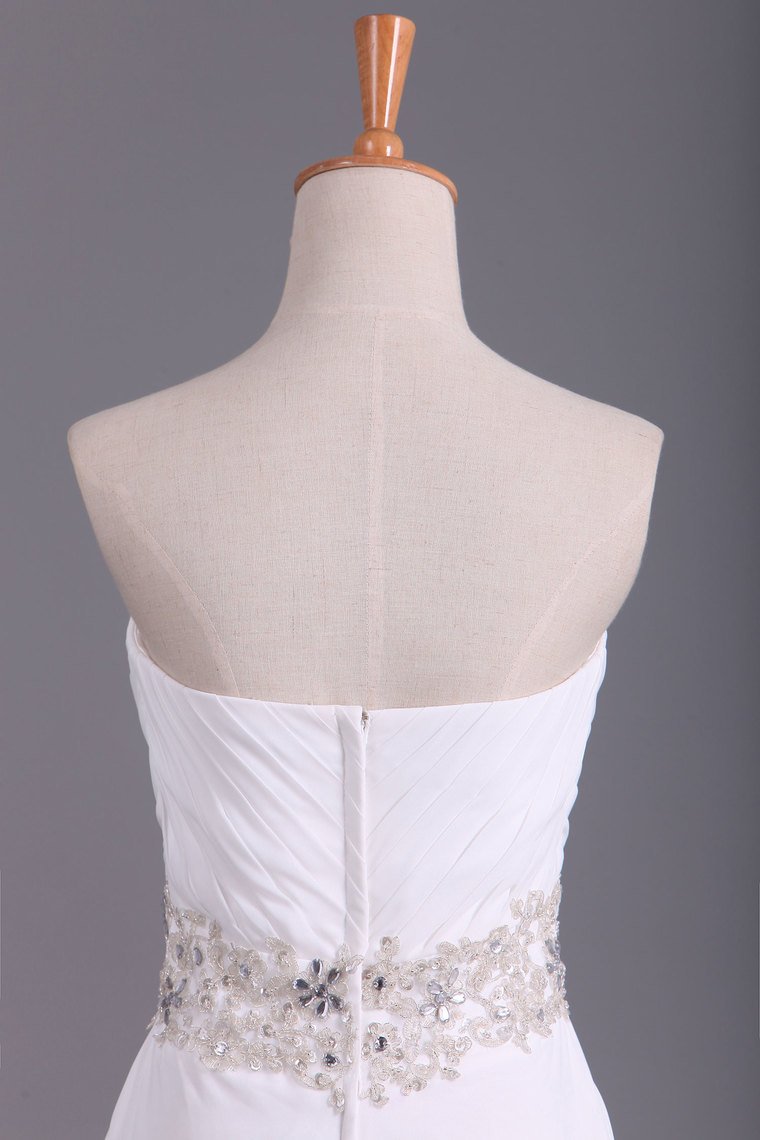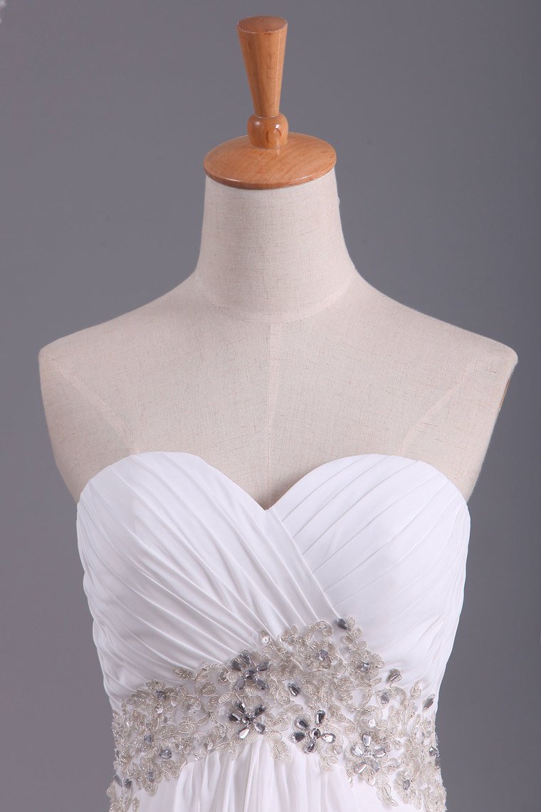 2024 A Line Sweetheart Chiffon With Beads And Ruffles Wedding Dresses