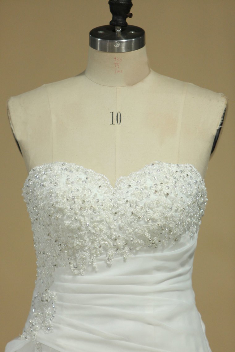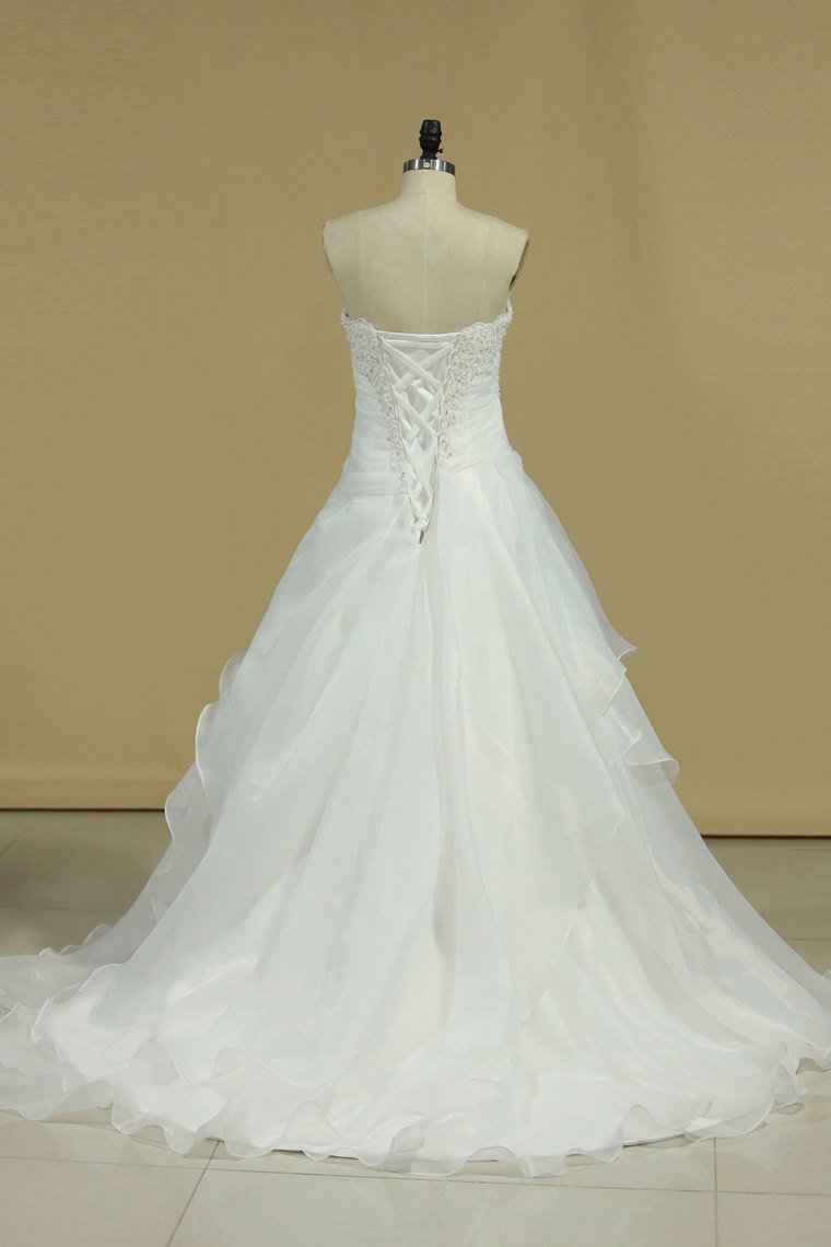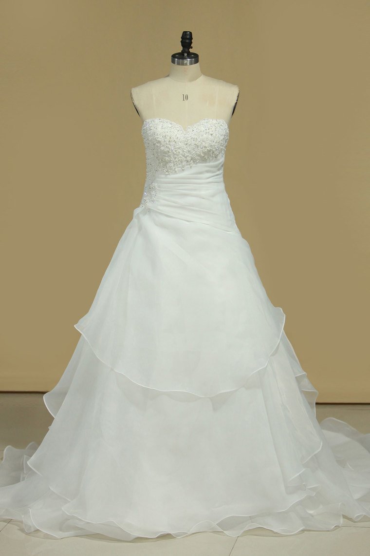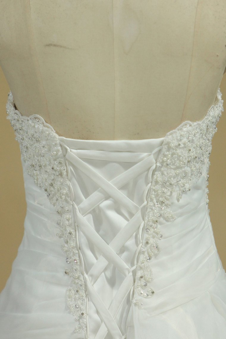 2024 A Line Sweetheart Organza Wedding Dresses With Beads And Ruffles