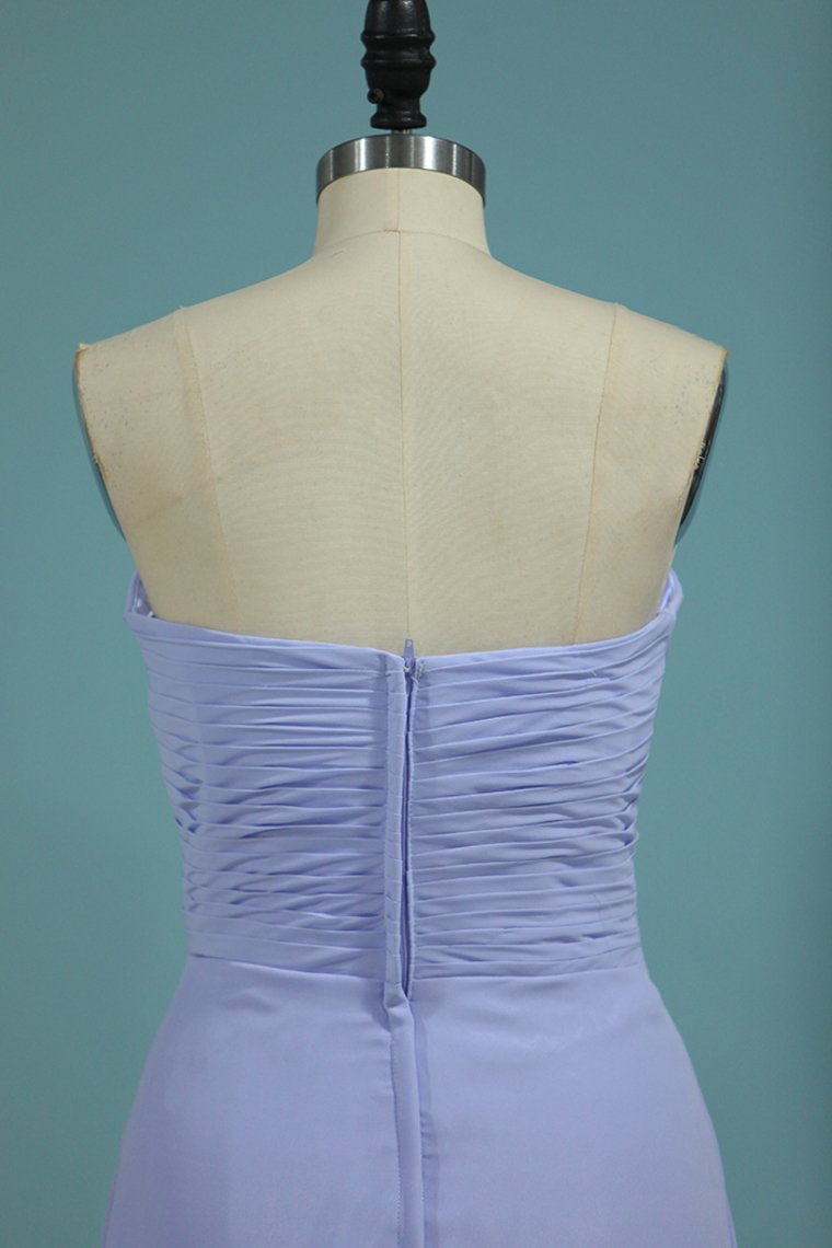 2024 A Line Sweetheart Ruched Bodice Asymmetrical Chiffon Bridesmaid Dresses