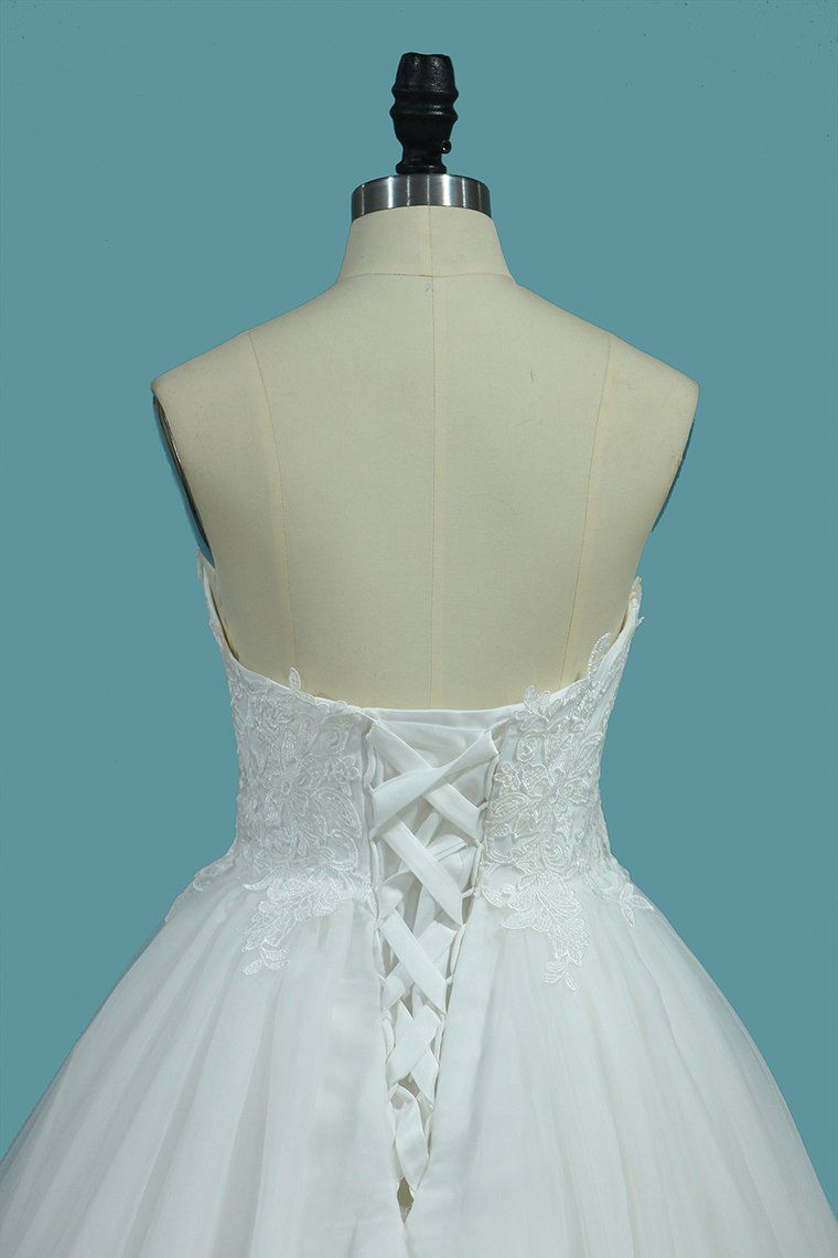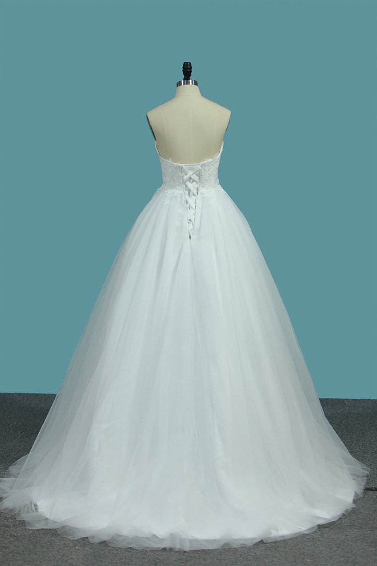 2024 A Line Sweetheart Tulle Wedding Dresses With Appliques Sweep/Brush Train