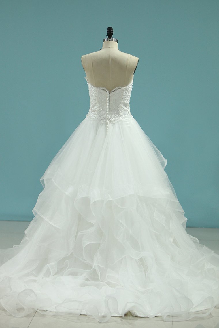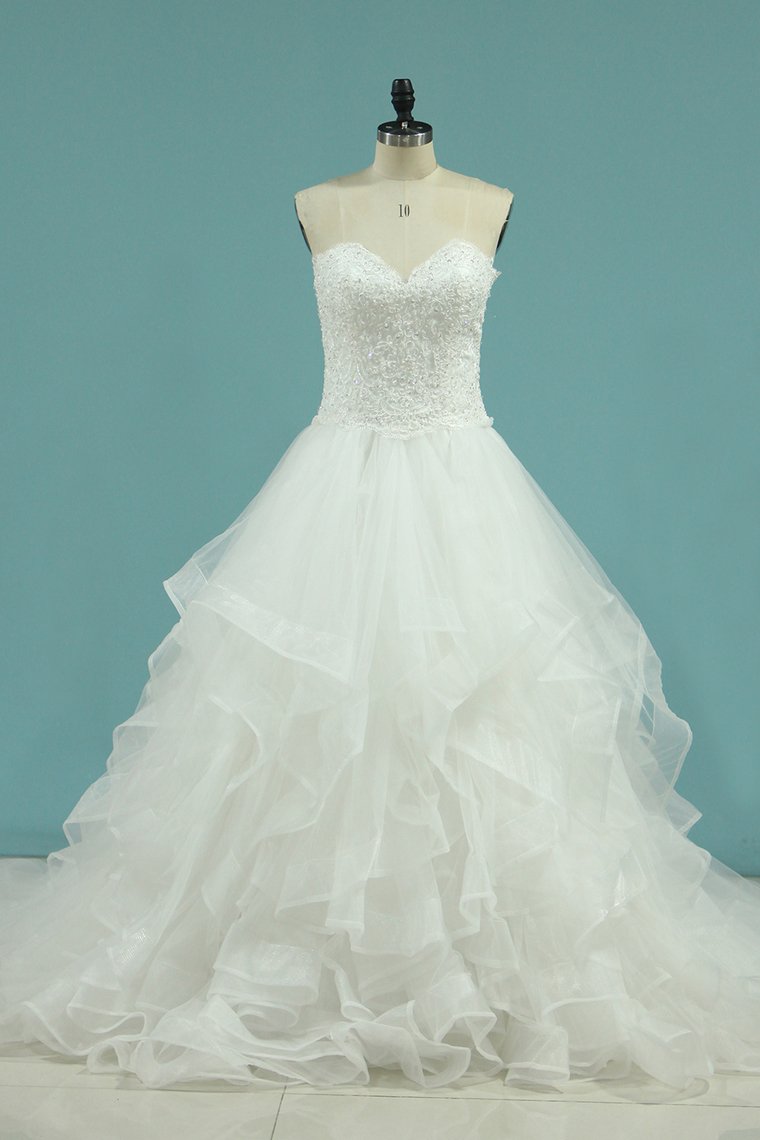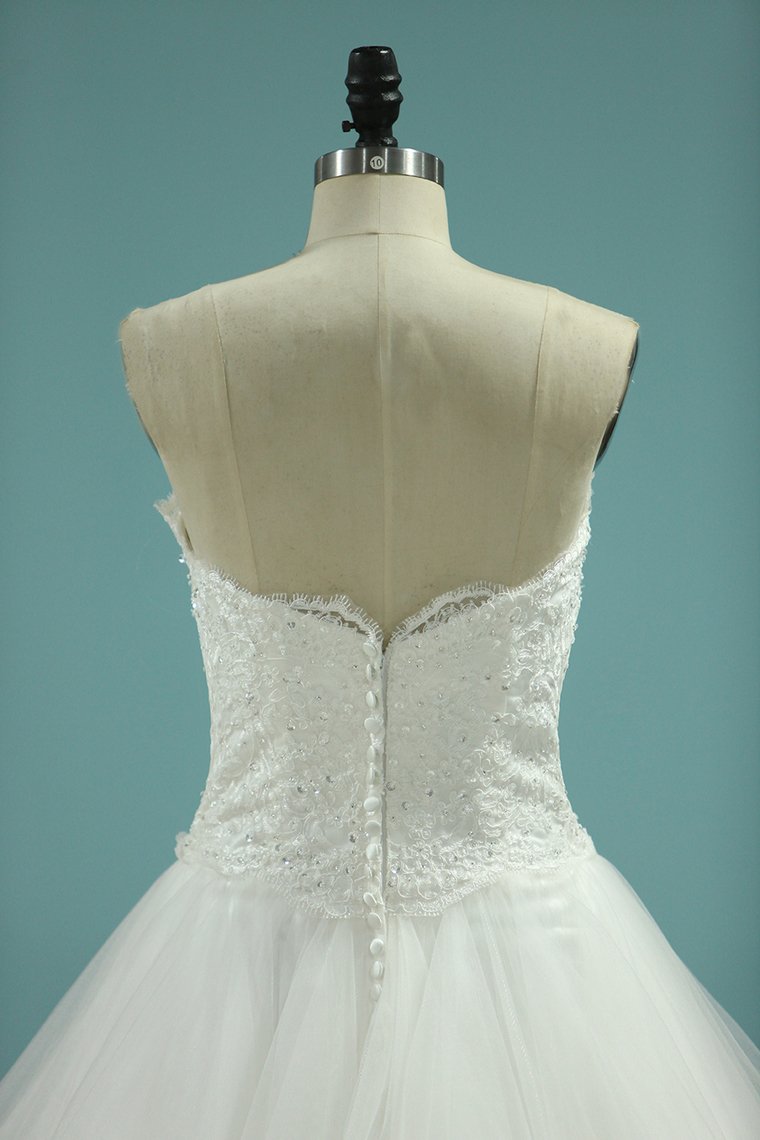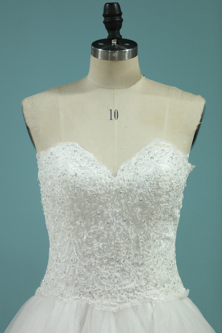 2024 A Line Sweetheart Wedding Dresses With Applique And Beads Tulle