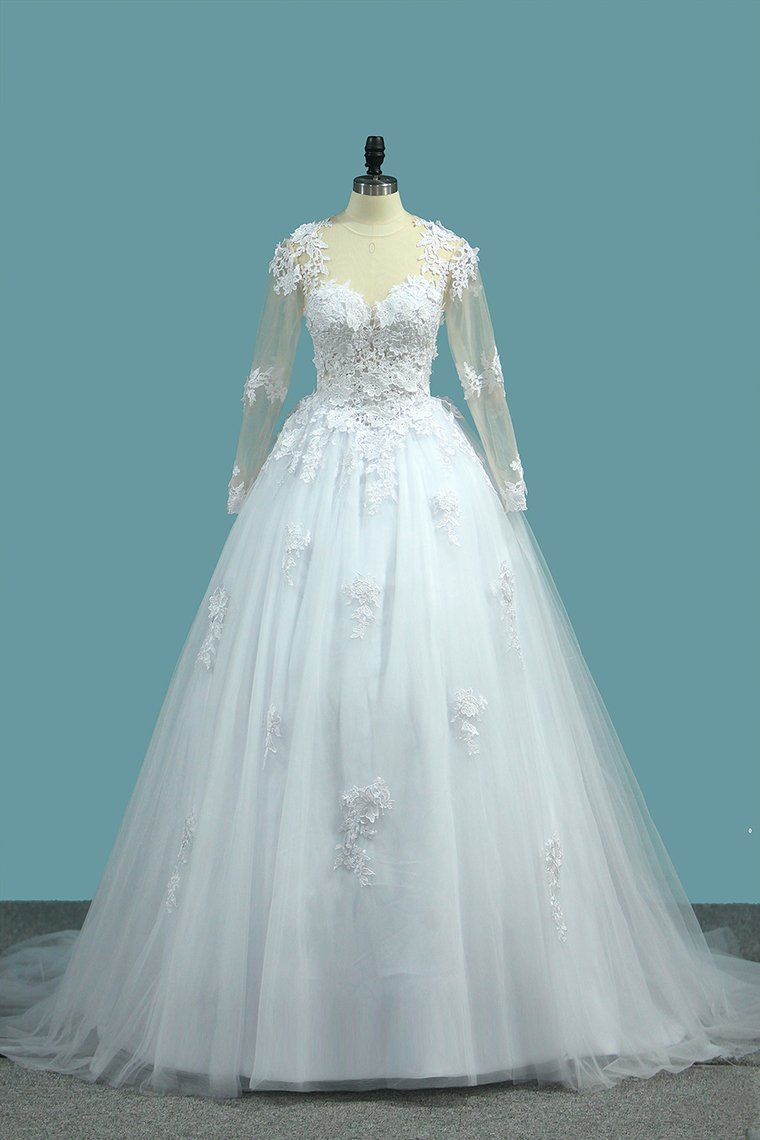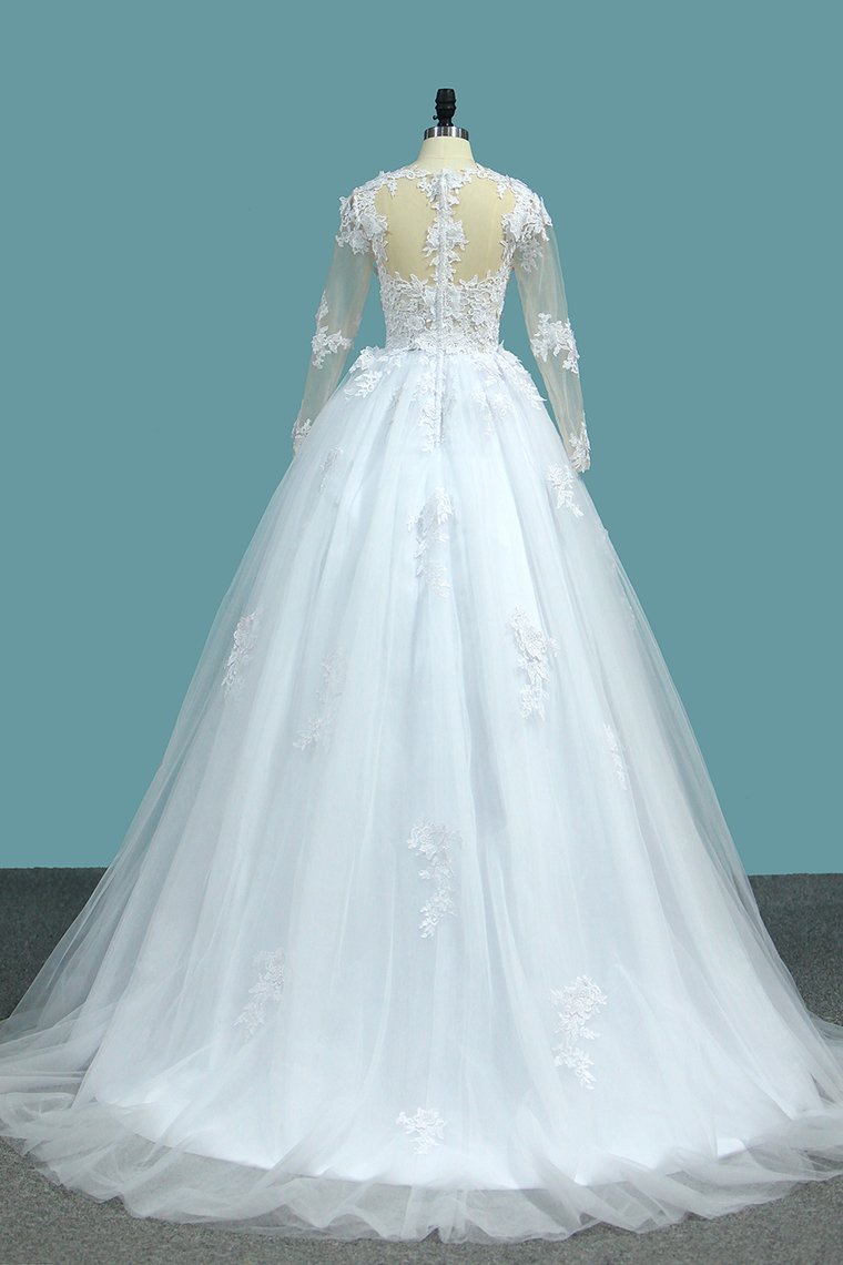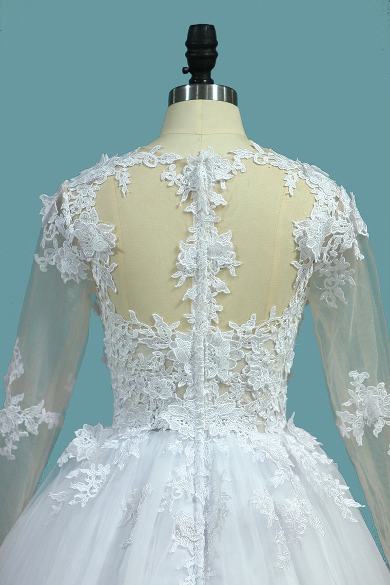 2024 A Line V Neck Long Sleeves Wedding Dresses Tulle With Applique