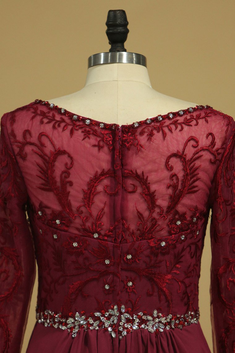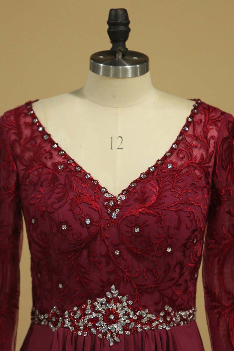 2024 A Line V Neck Mother Of The Bride Dresses 3/4 Length Sleeve Chiffon