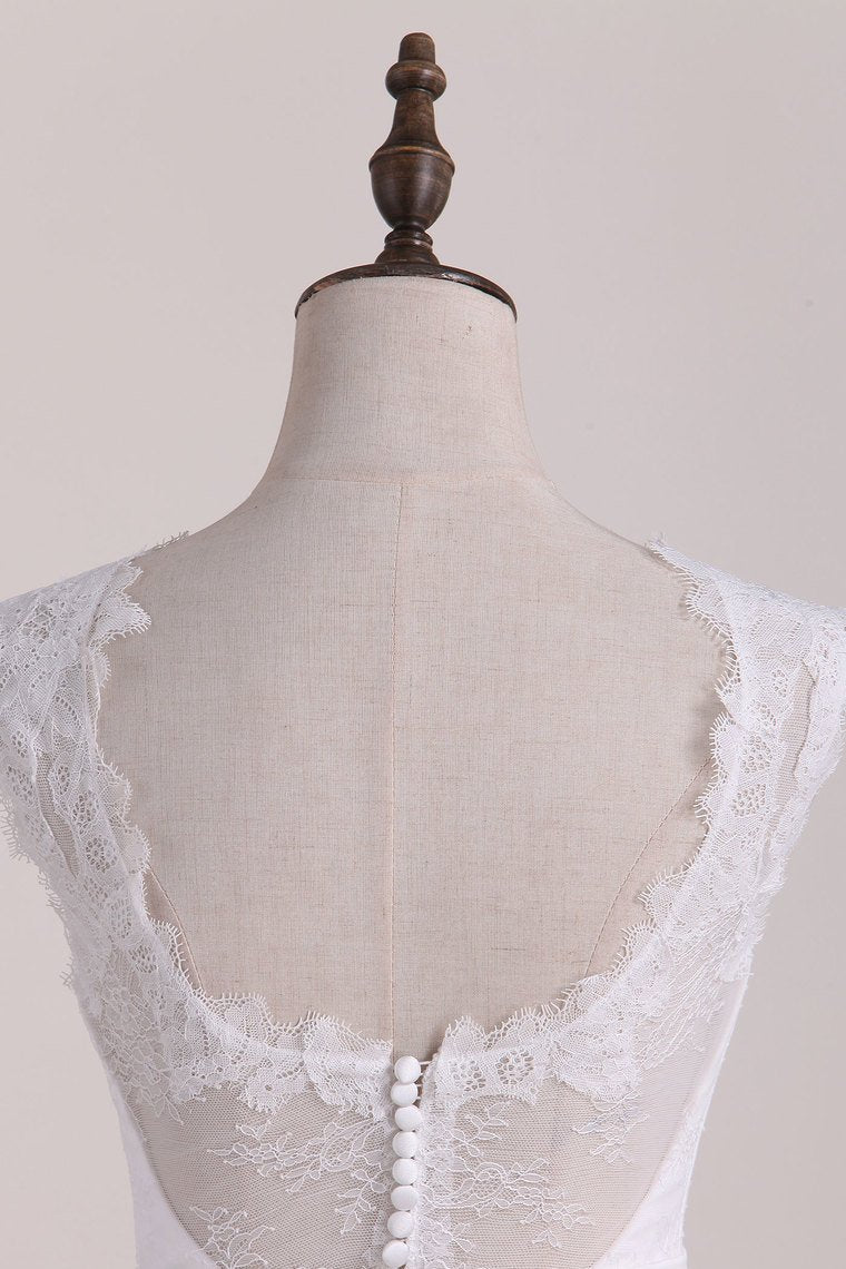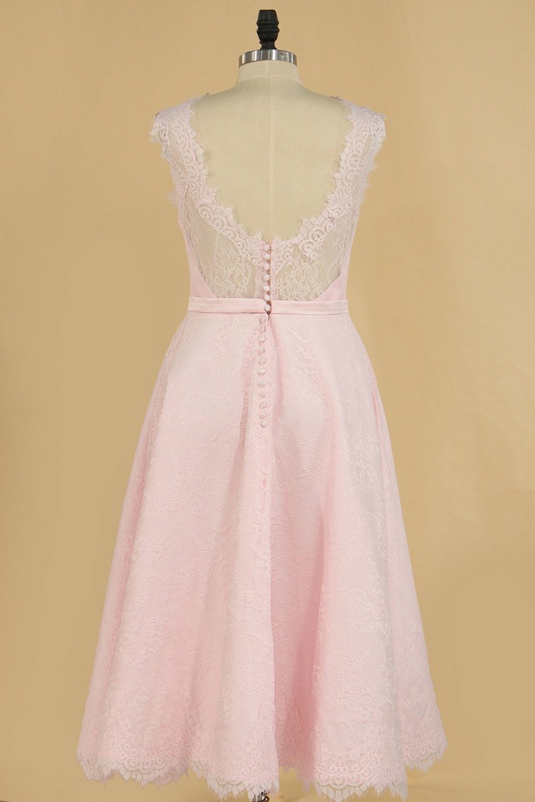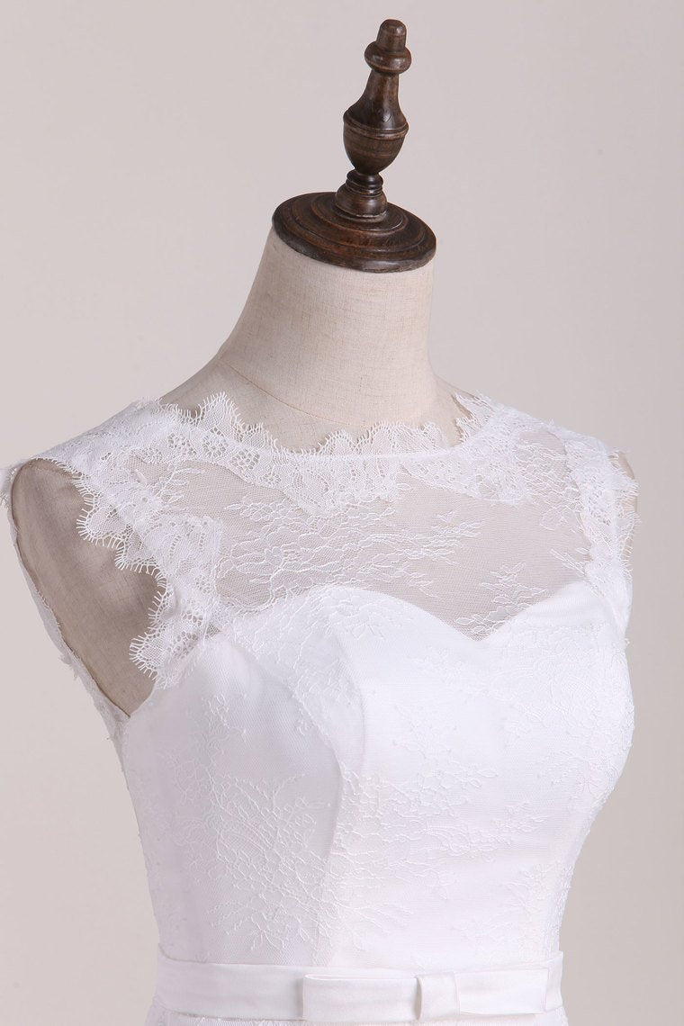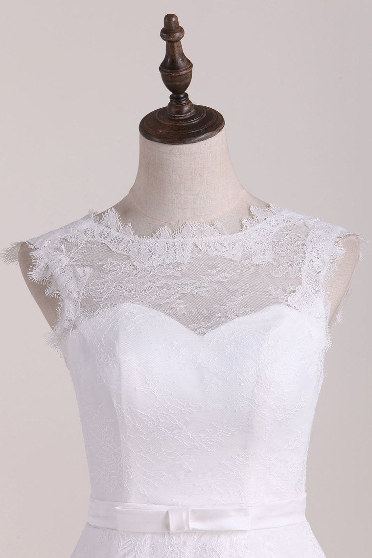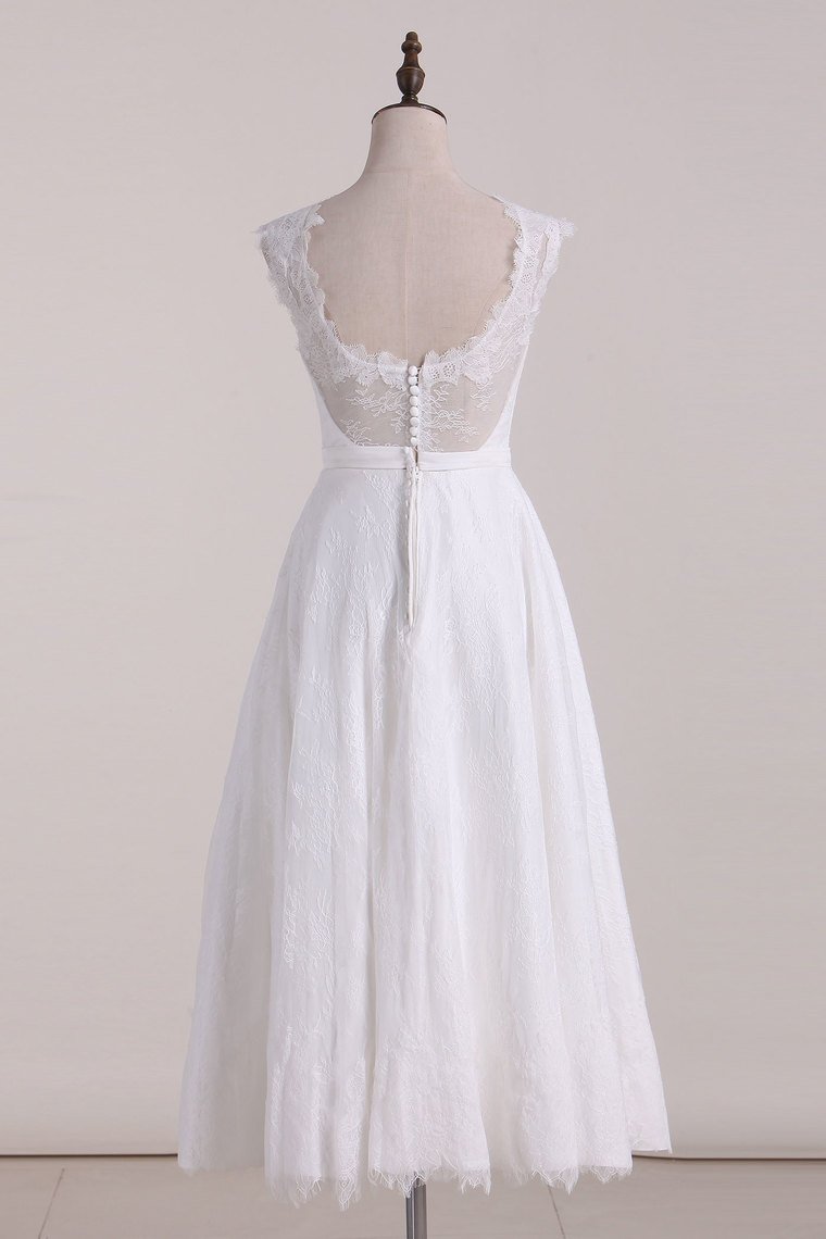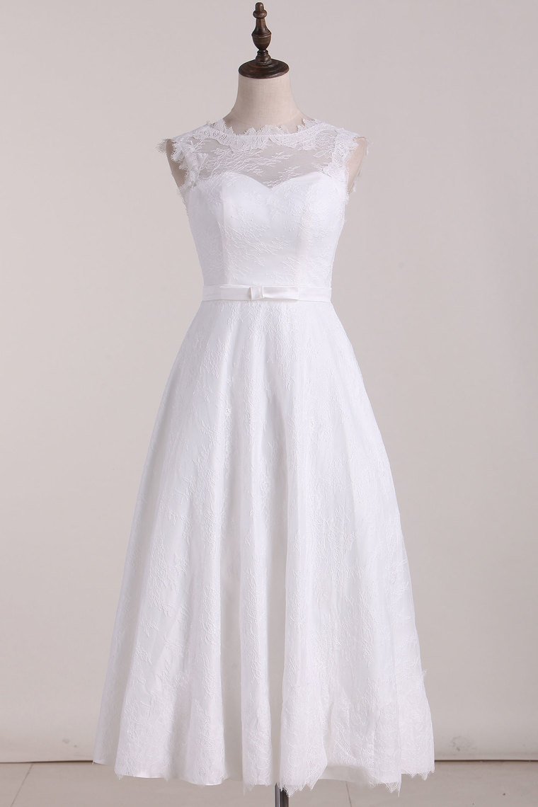 2024 A Line Wedding Dresses Scoop Lace With Sash Tea-Length