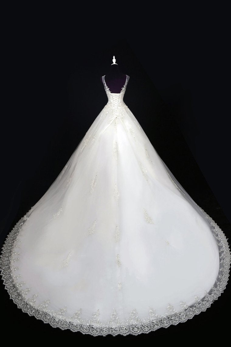 2024 A Line Wedding Dresses Scoop Tulle With Applique And Beads Lace Up