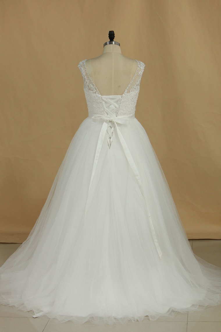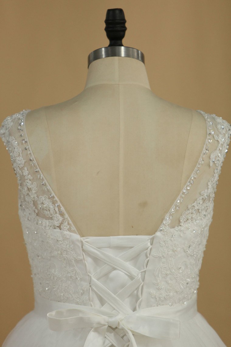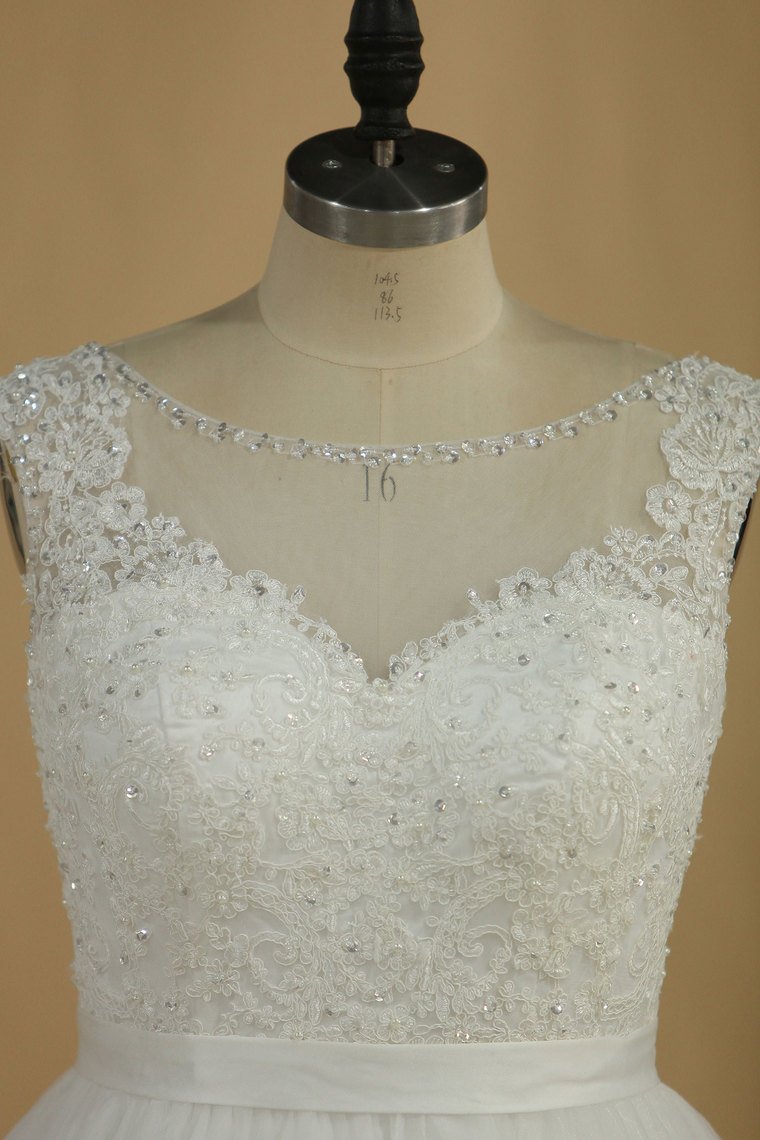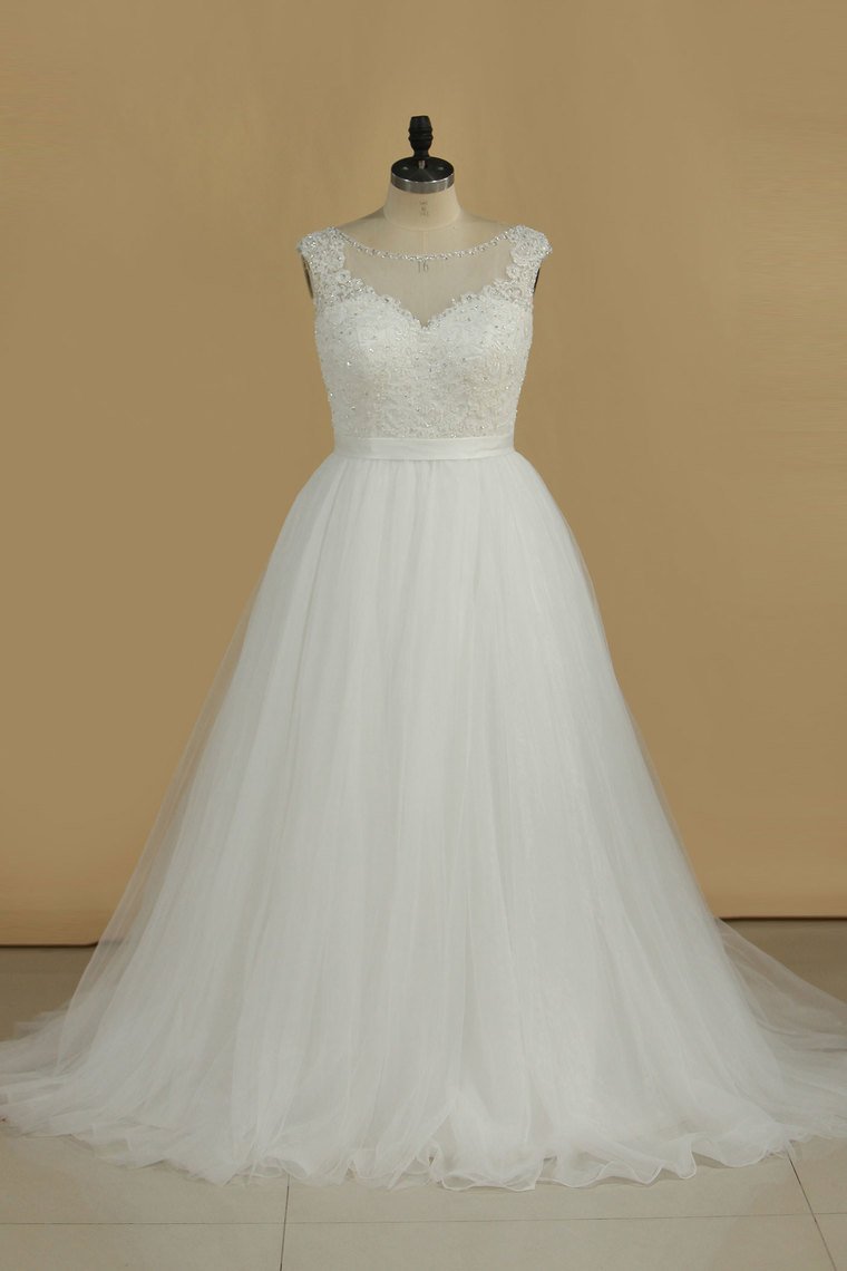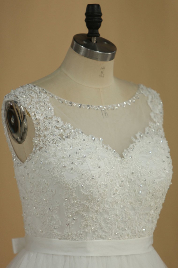 2024 A Line Wedding Dresses Scoop With Applique And Sash Organza
