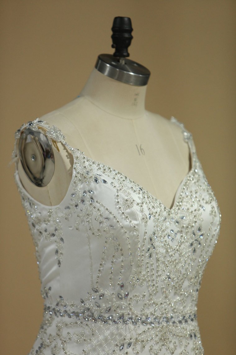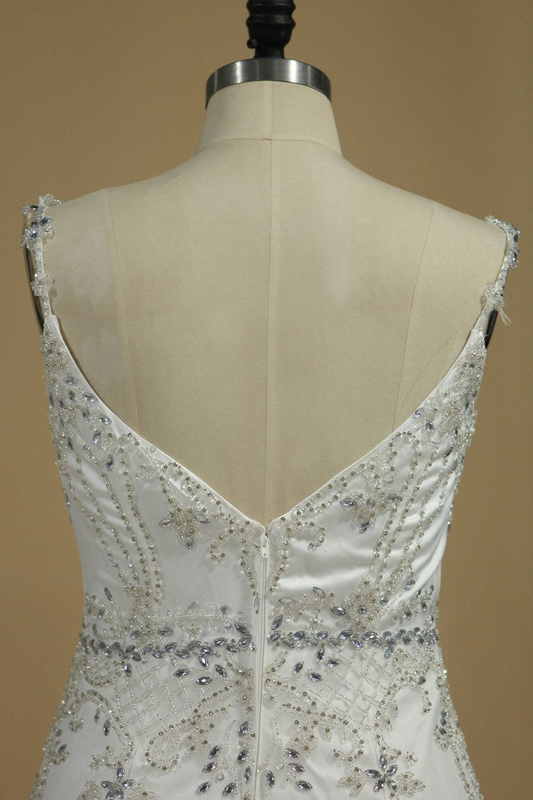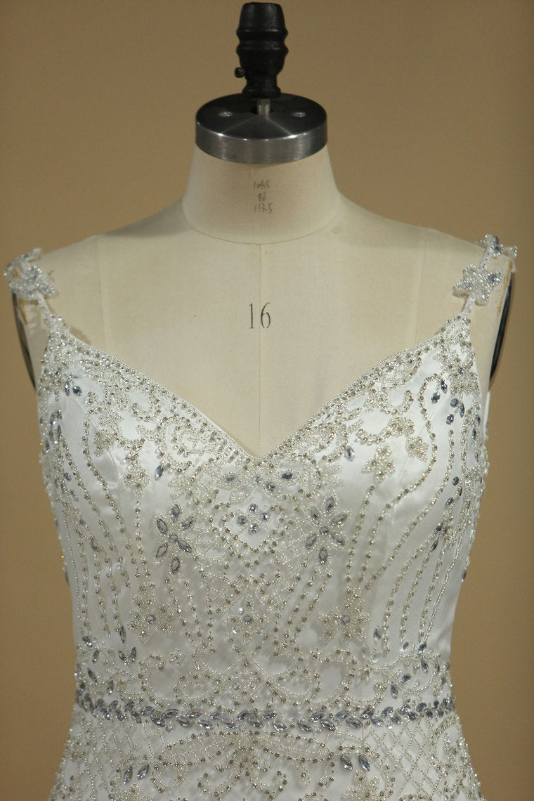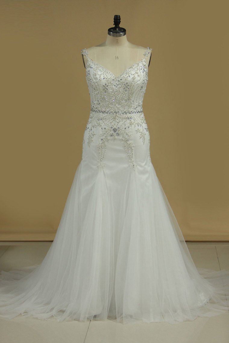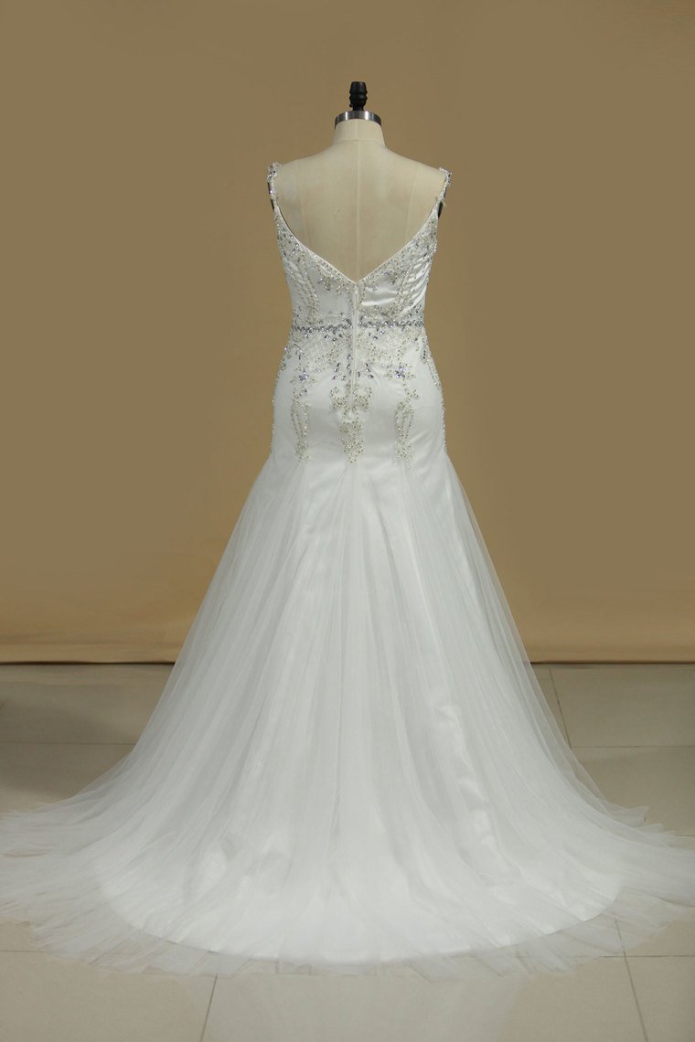 2024 A Line Wedding Dresses Spaghetti Straps Beaded Bodice Tulle