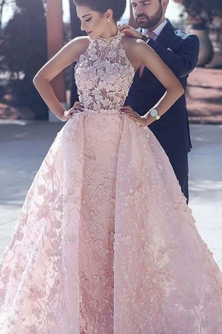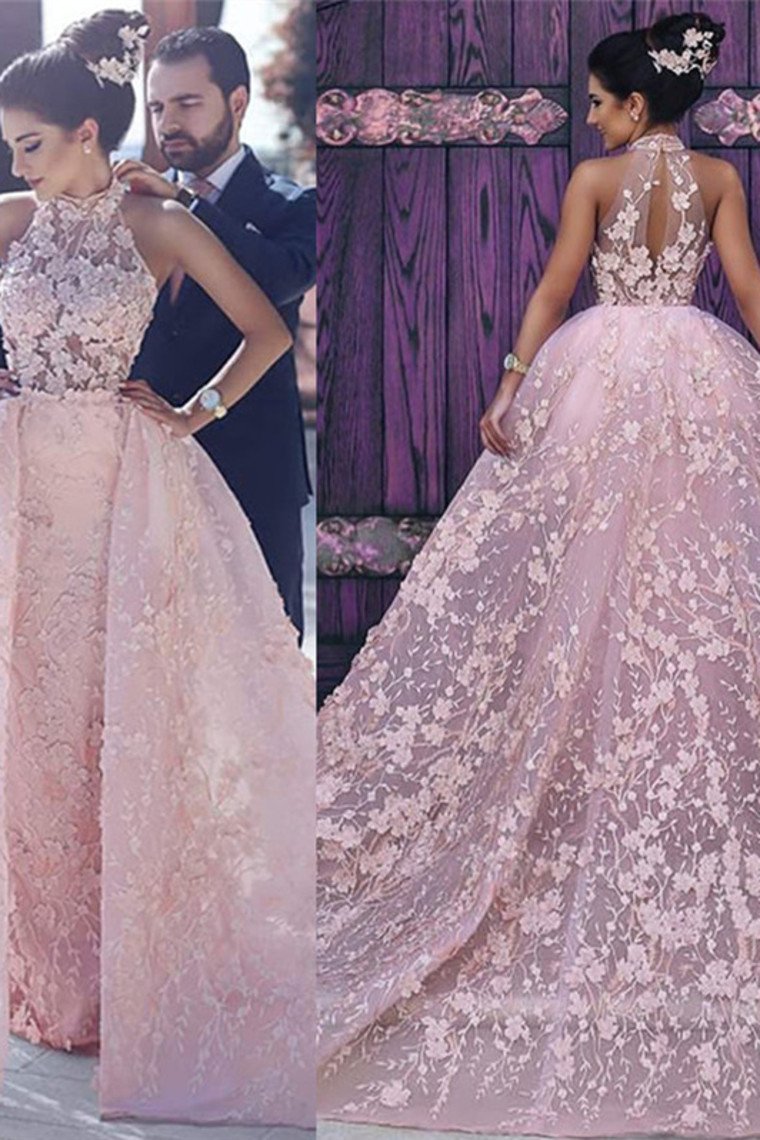 2024 Attractive High Neck Wedding Dresses Lace With Appliques And Detachable Train Zipper Up