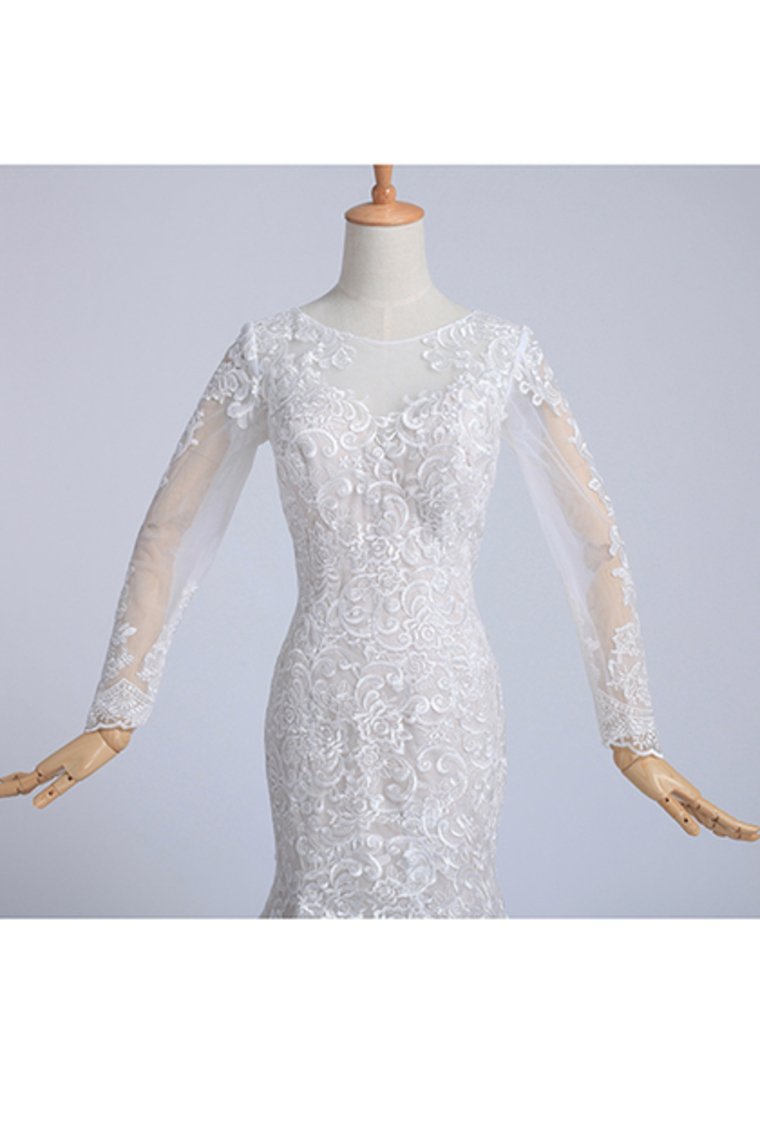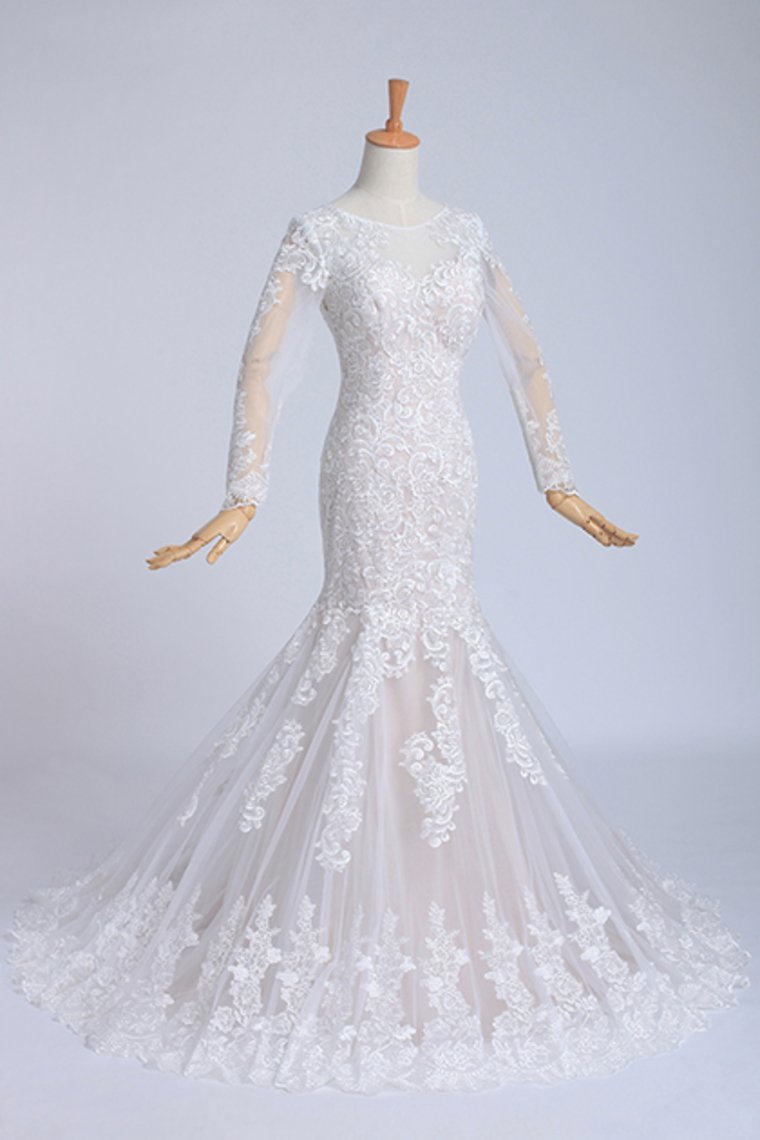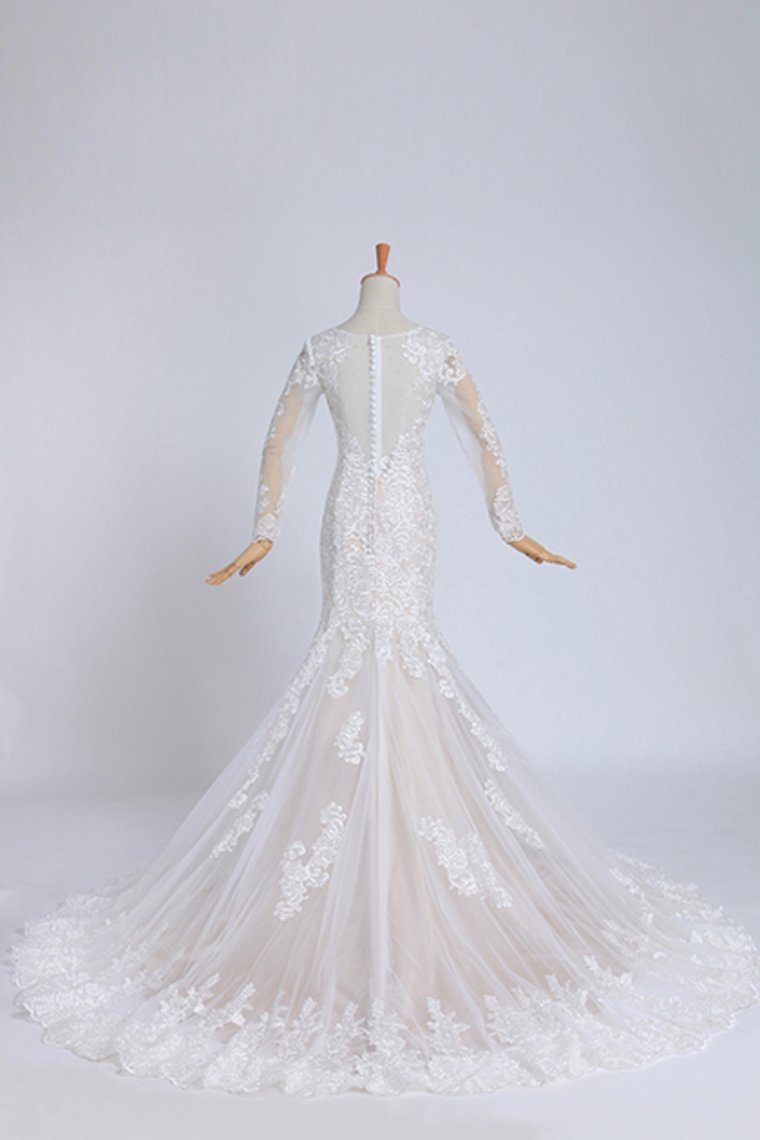 2024 Bateau Long Sleeves Wedding Dress Mermaid/Trumpet Court Trian With Applique