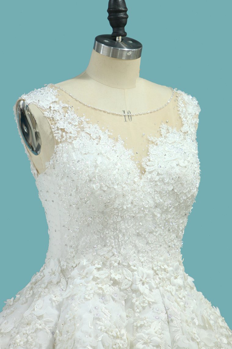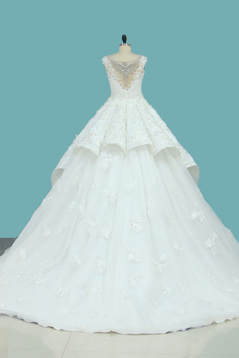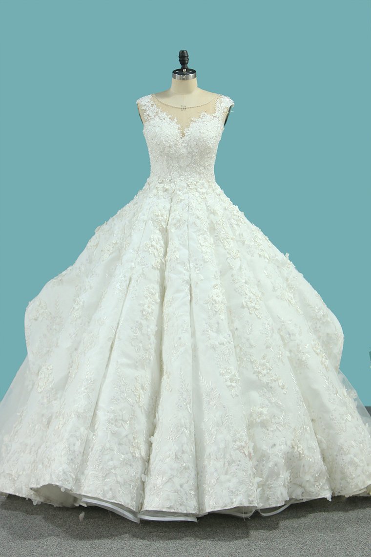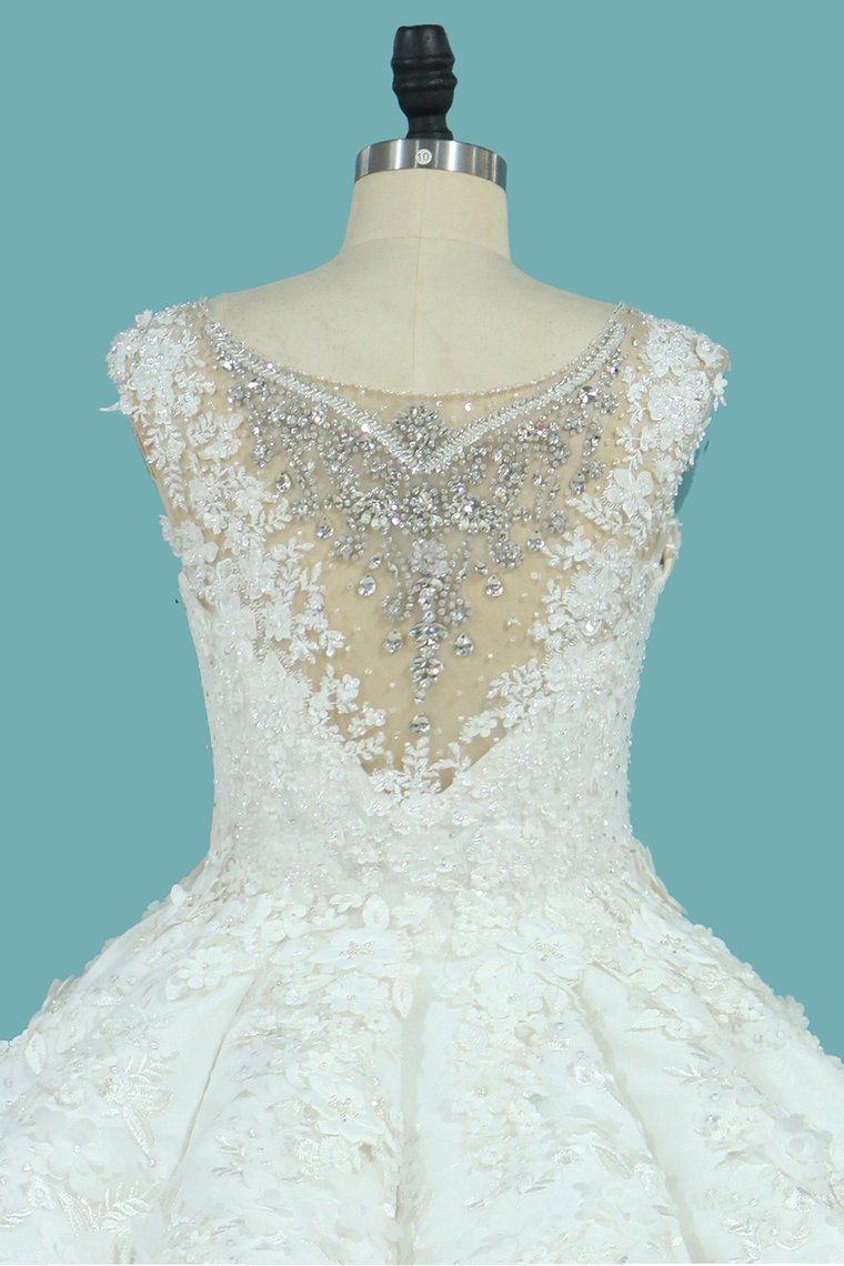 2024 Bateau Top Quality Lace Ball Gown Wedding Dresses Court Train