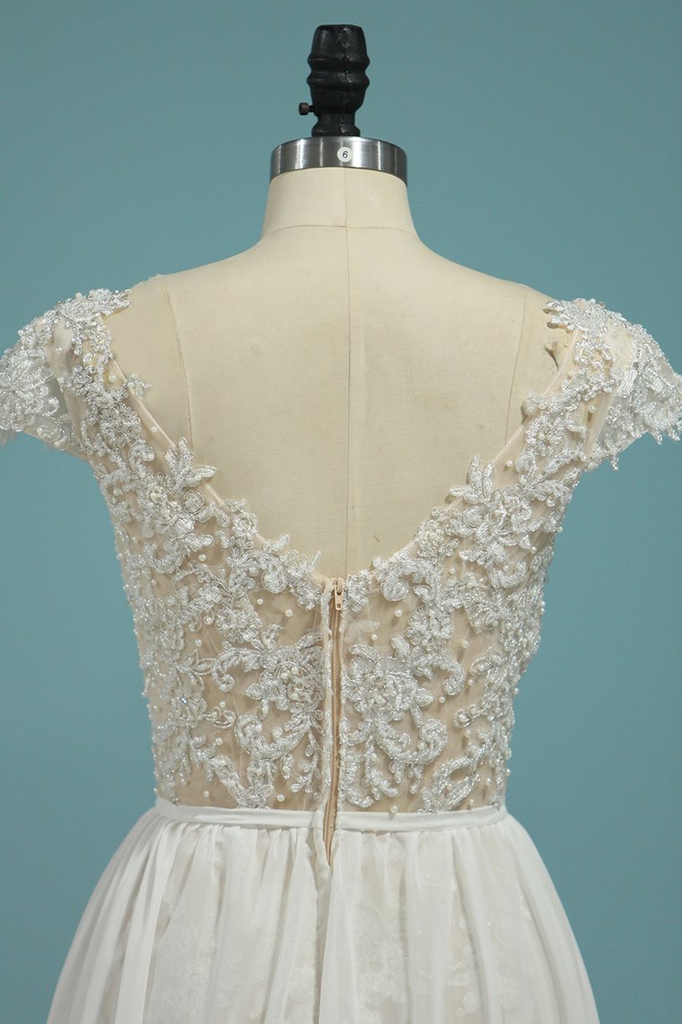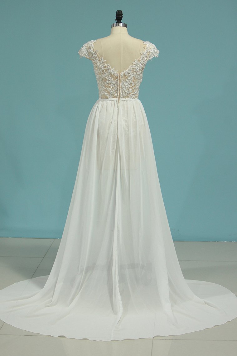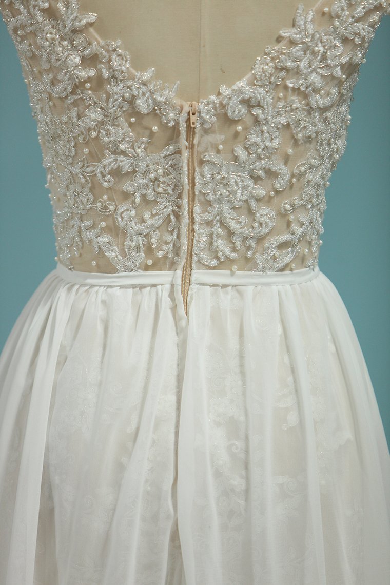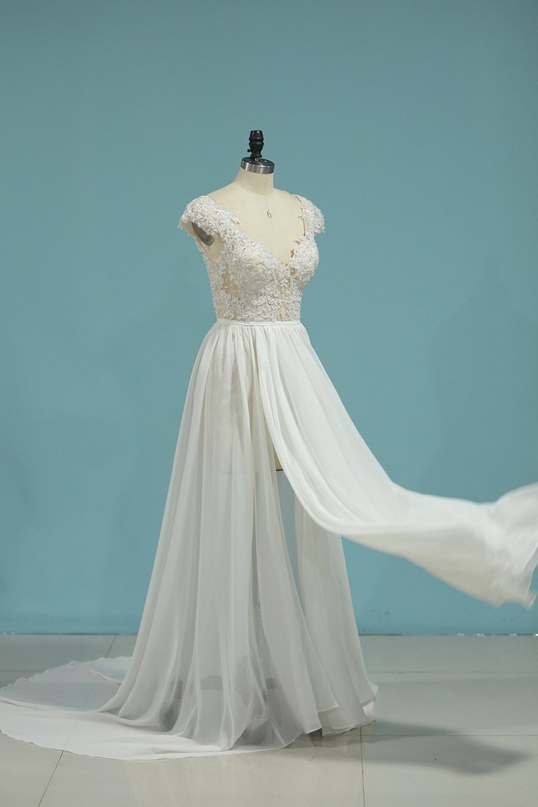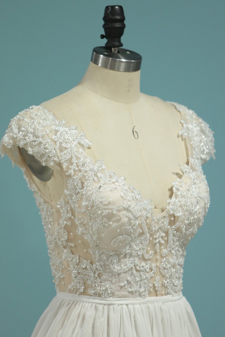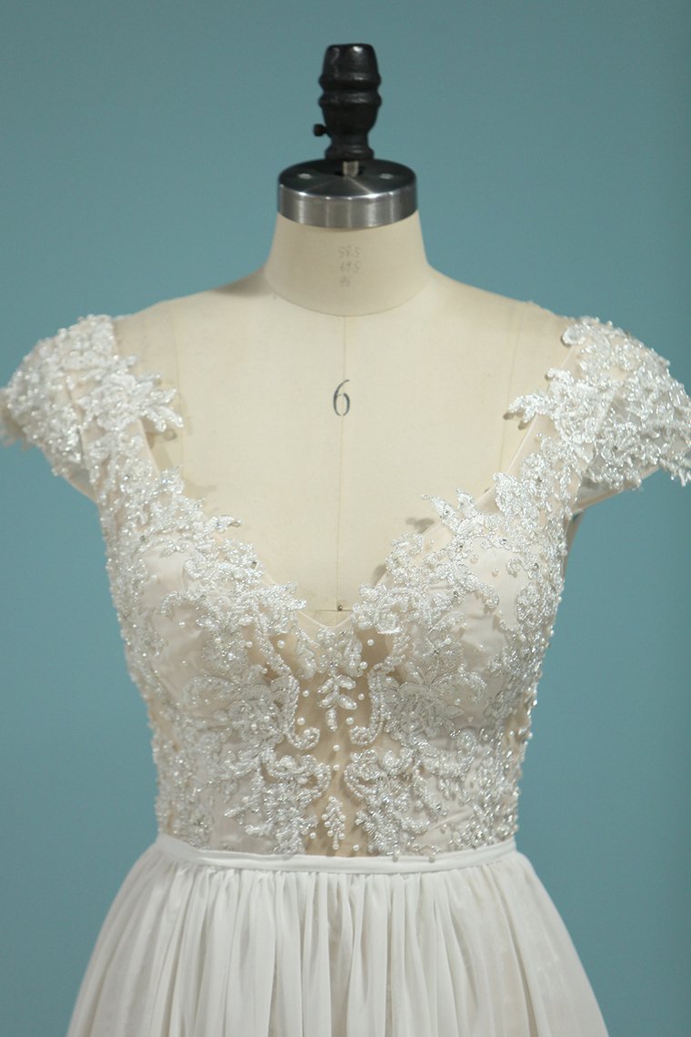 2024 Beach Wedding Dresses A-Line V-Neck Chiffon Full Beaded Top