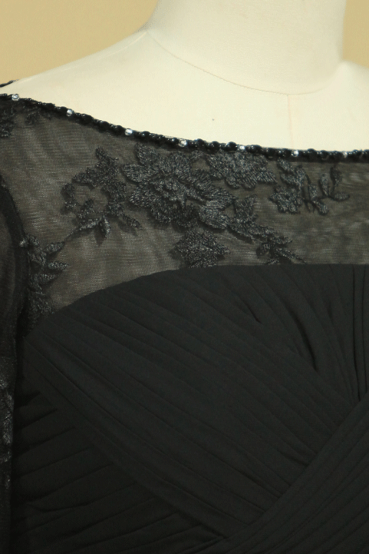 2024 Black Plus Size Mother Of The Bride Dresses Scoop A Line Chiffon With Applique