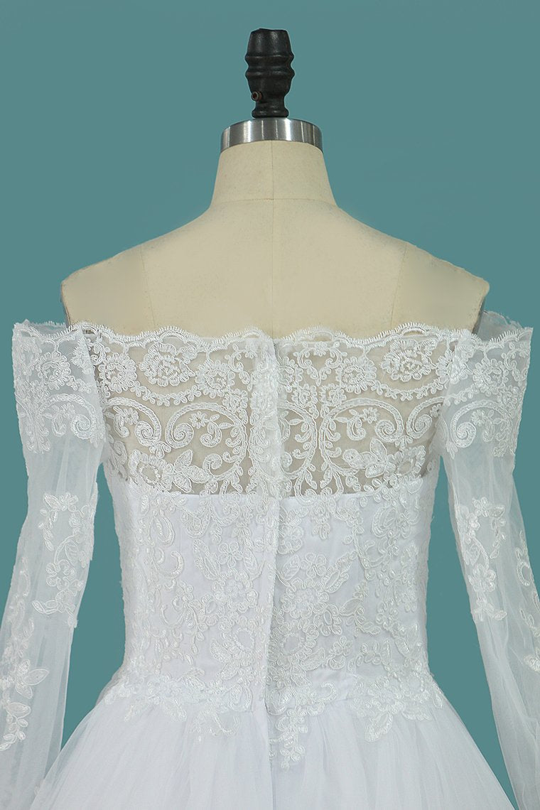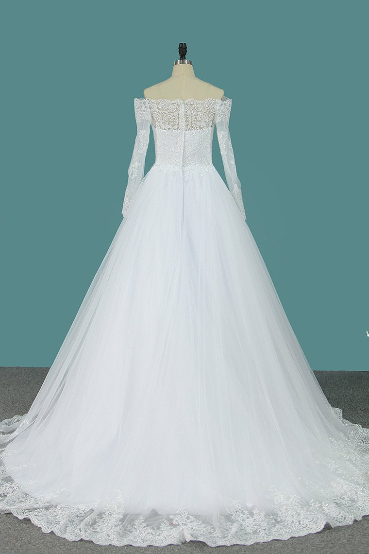 2024 Boat Neck A Line Long Sleeves Wedding Dresses Tulle With Applique