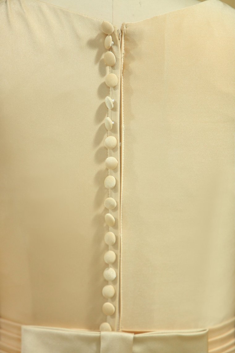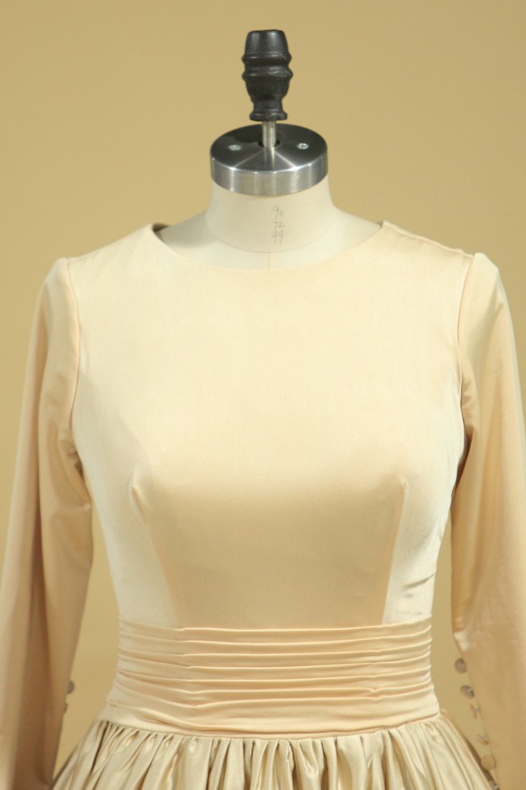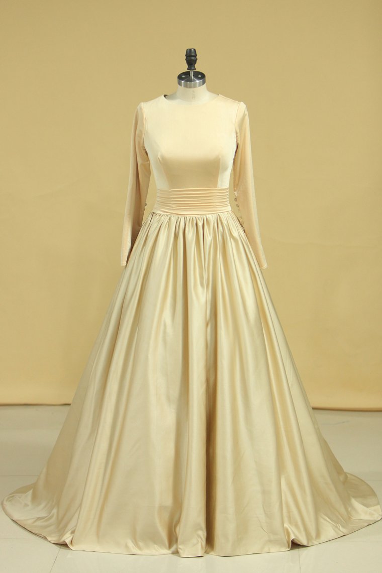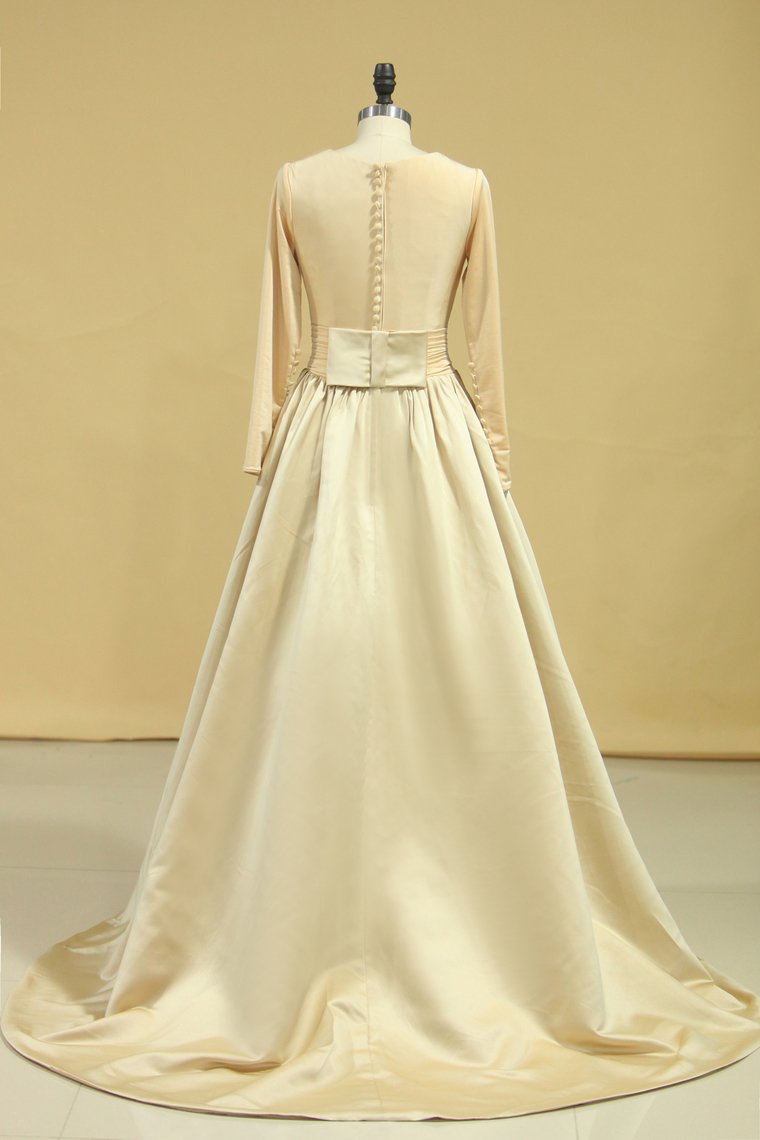 2024 Champagne Muslim Wedding Dresses Scoop A Line Long Sleeves Satin Plus Size