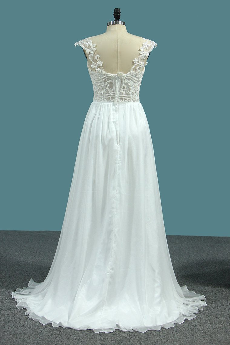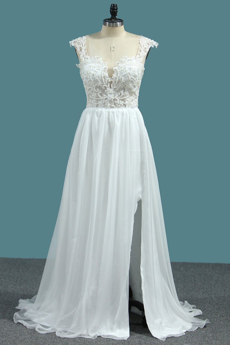 2024 Chiffon A Line Straps Wedding Dresses With Applique And Beads