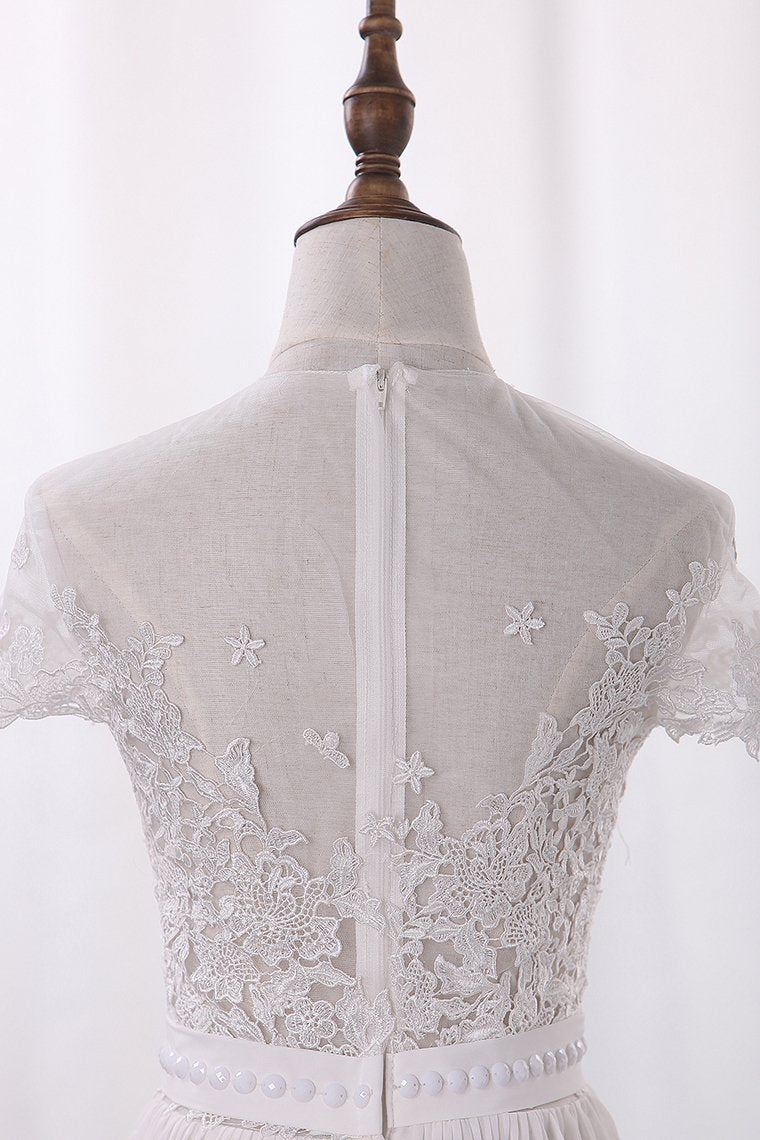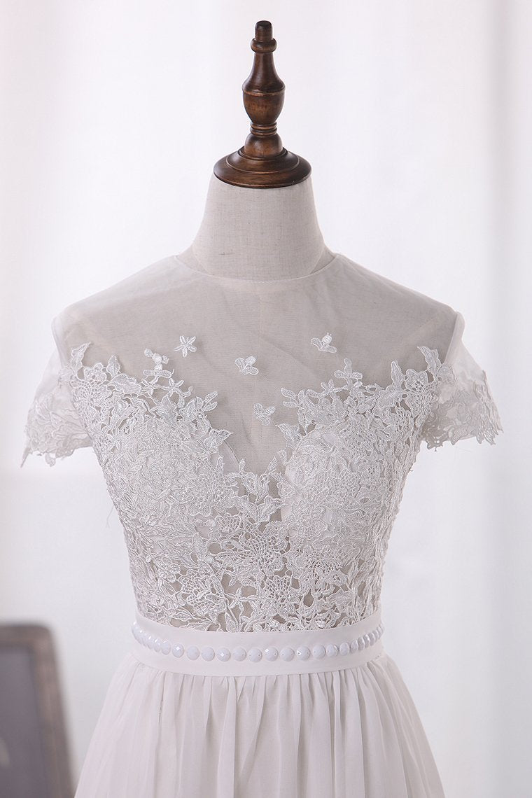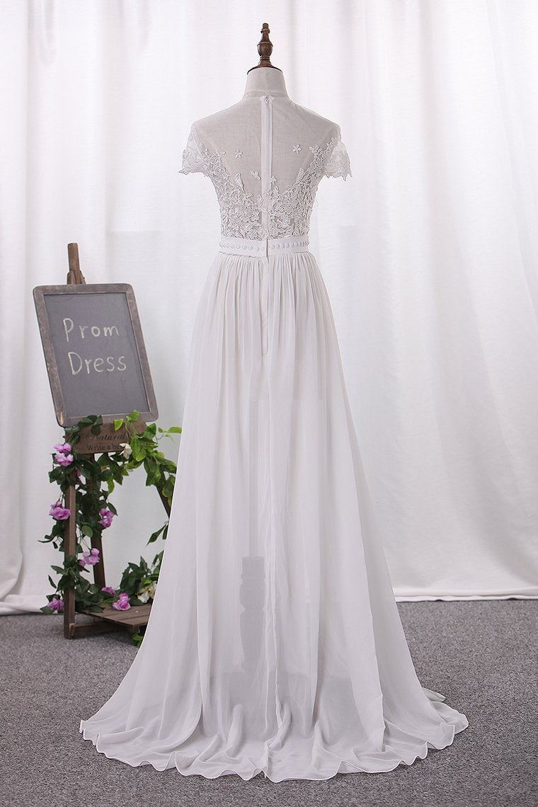 2024 Chiffon Bateau A Line Wedding Dresses With Applique And Slit
