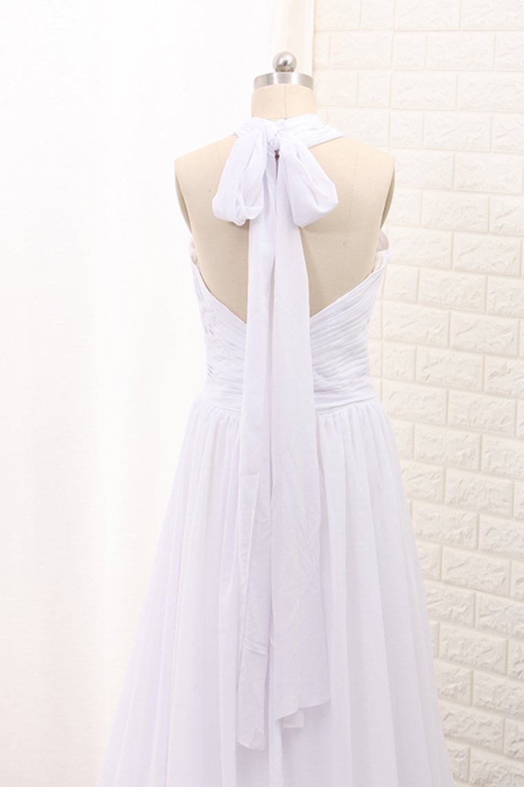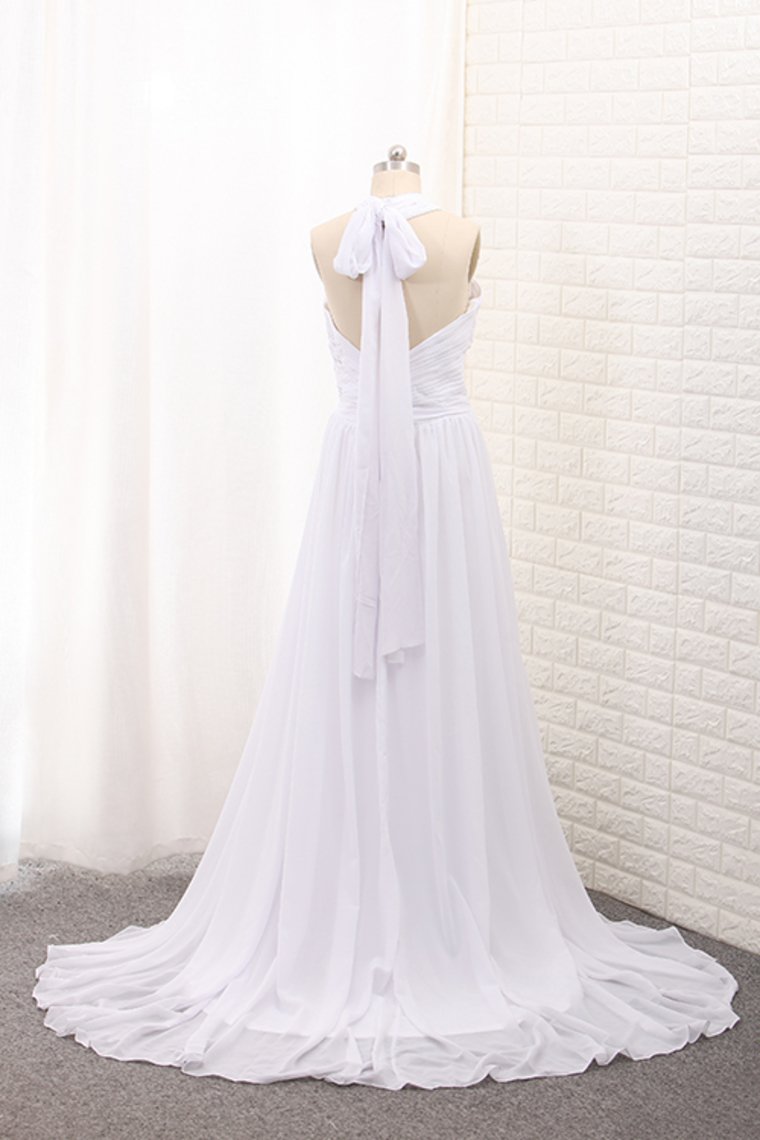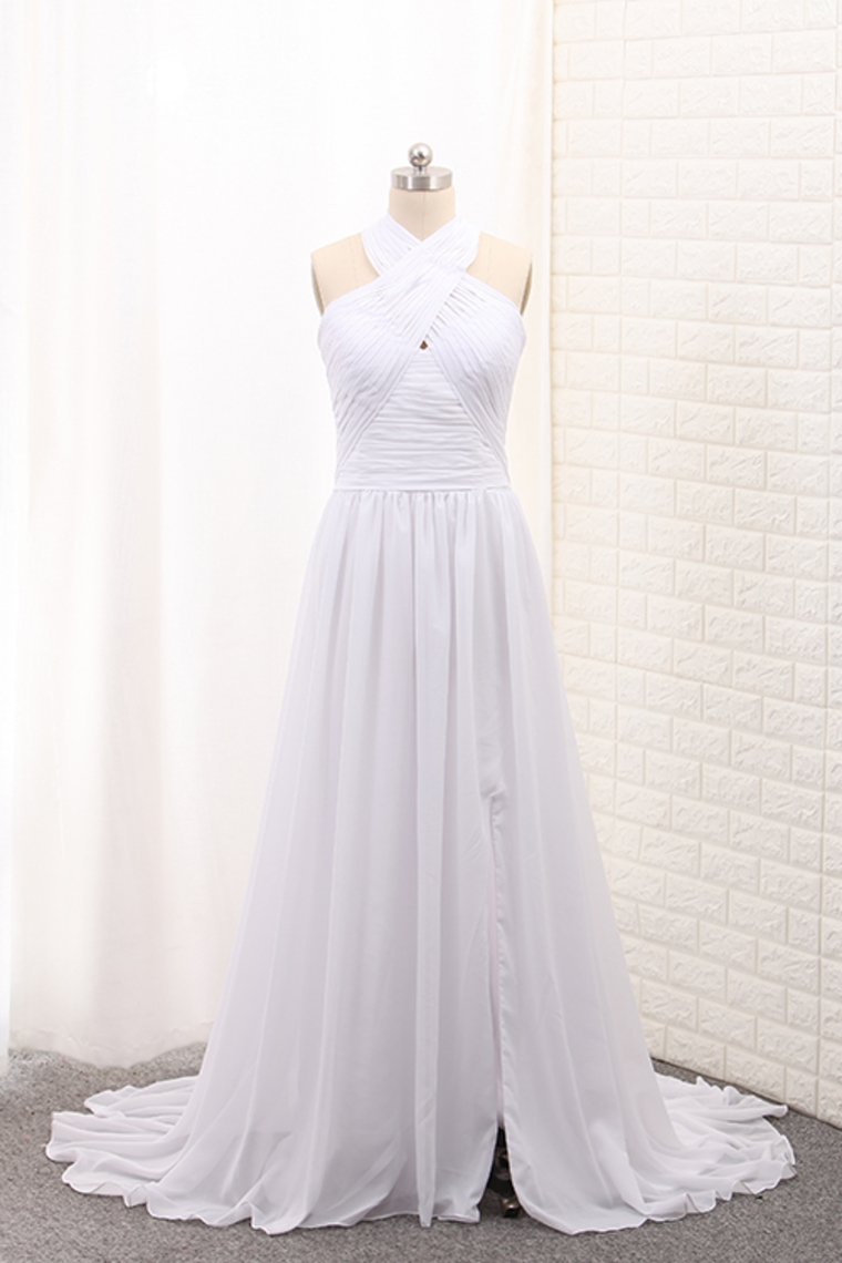 2024 Chiffon Halter With Ruffles And Slit Court Train Wedding Dresses