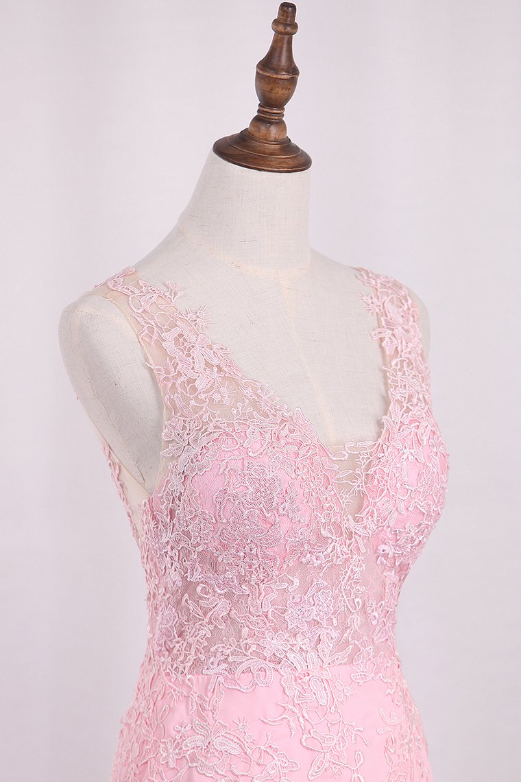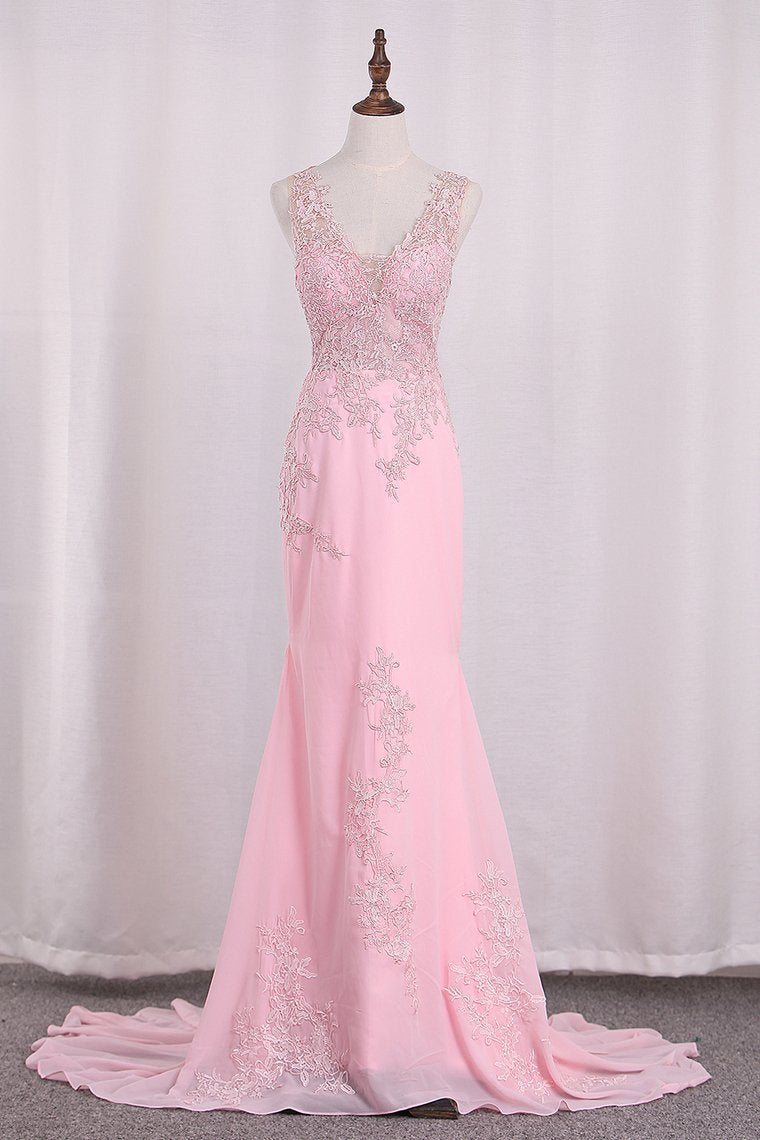 2024 Chiffon Mermaid V Neck Wedding Dresses With Applique Court Train