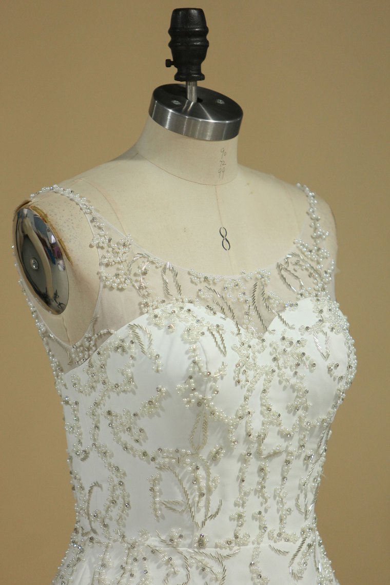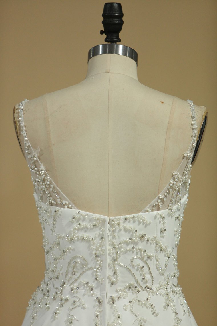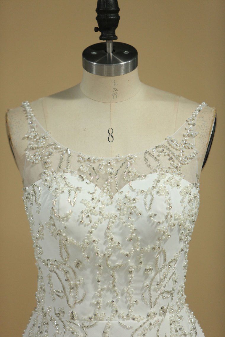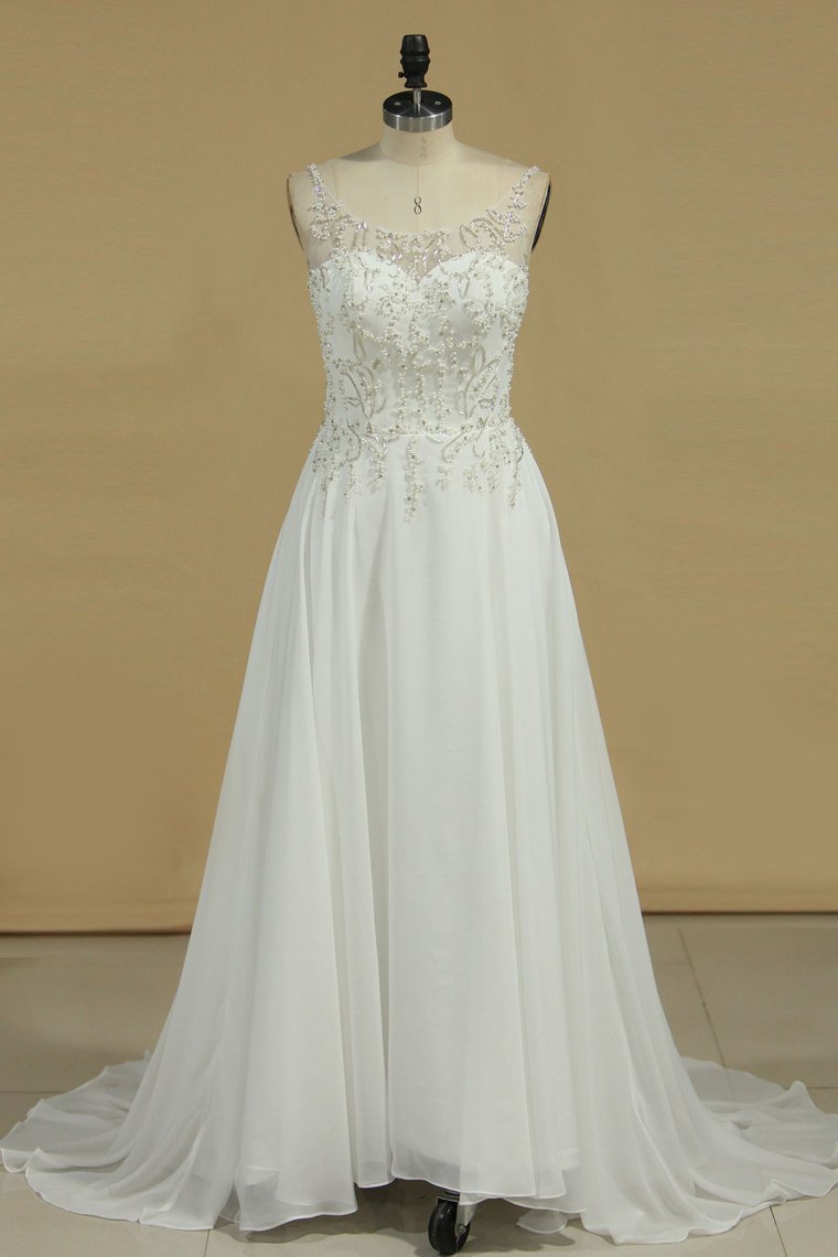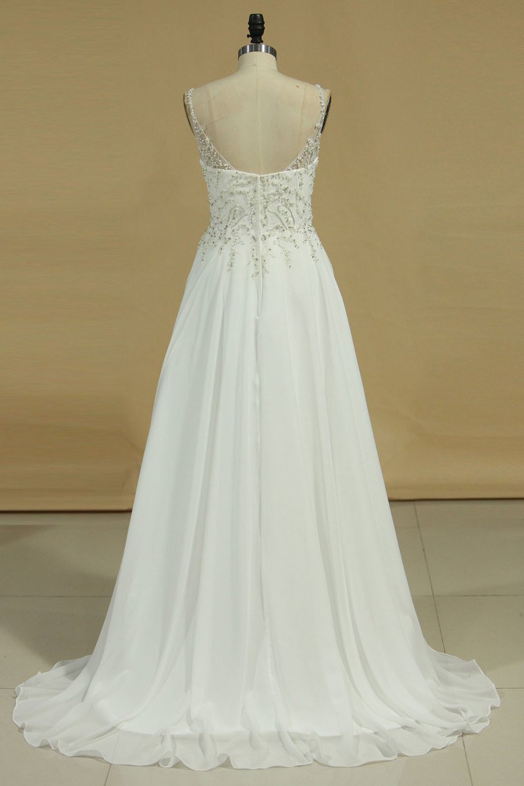 2024 Chiffon Spaghetti Straps Beaded Bodice Wedding Dresses A Line