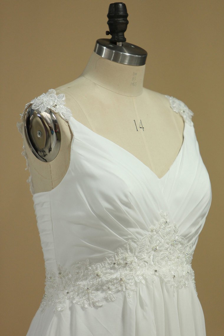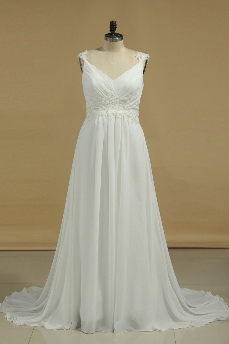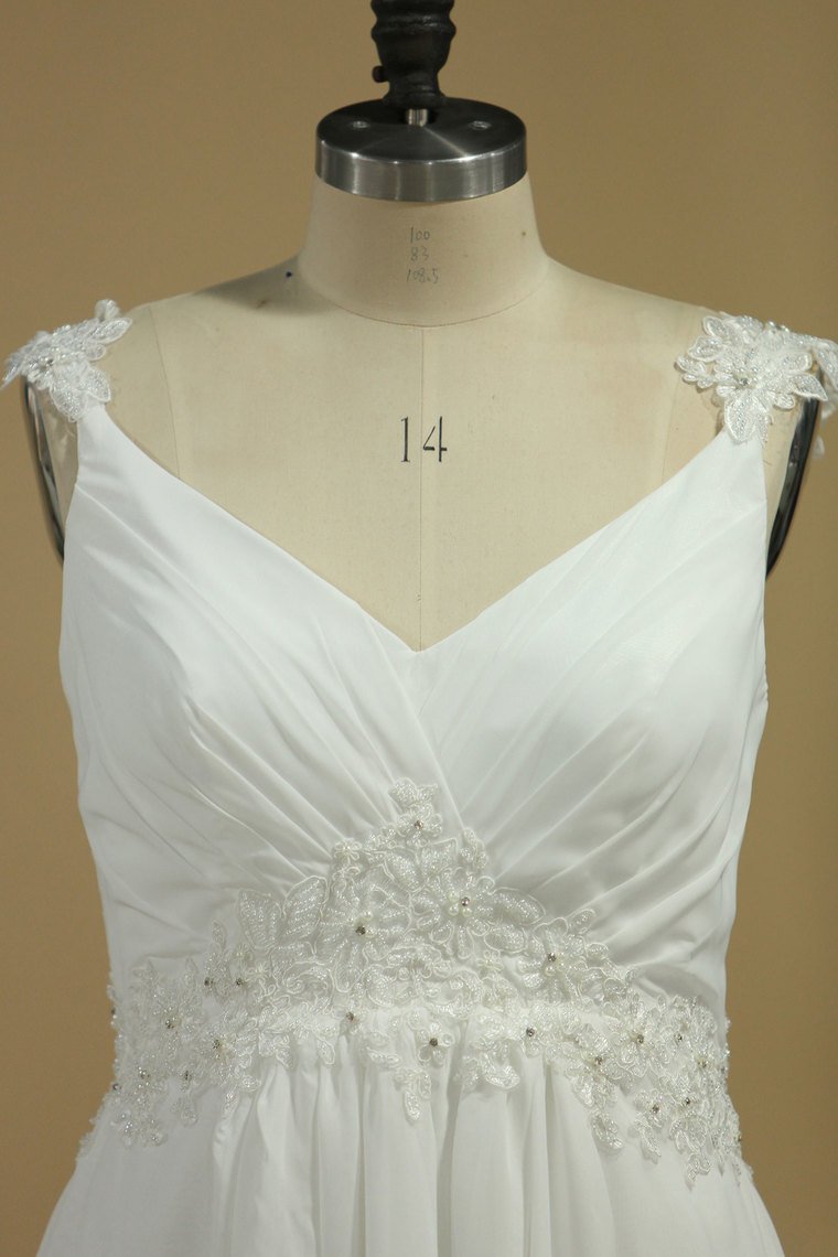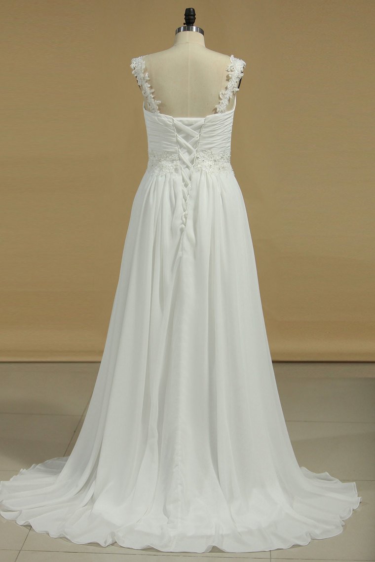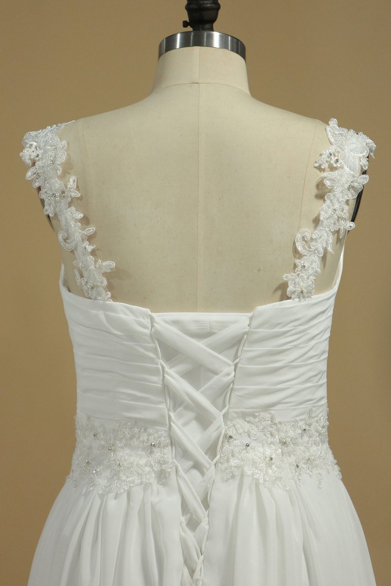 2024 Chiffon Straps A Line Wedding Dresses With Applique And Beads Lace Up