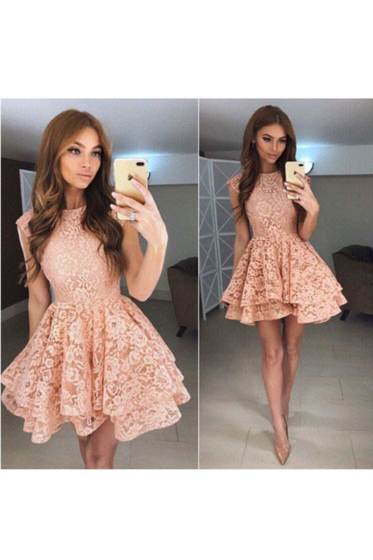 2024 Cocktail Dresses A Line Scoop Lace Short/Mini Zipper Up