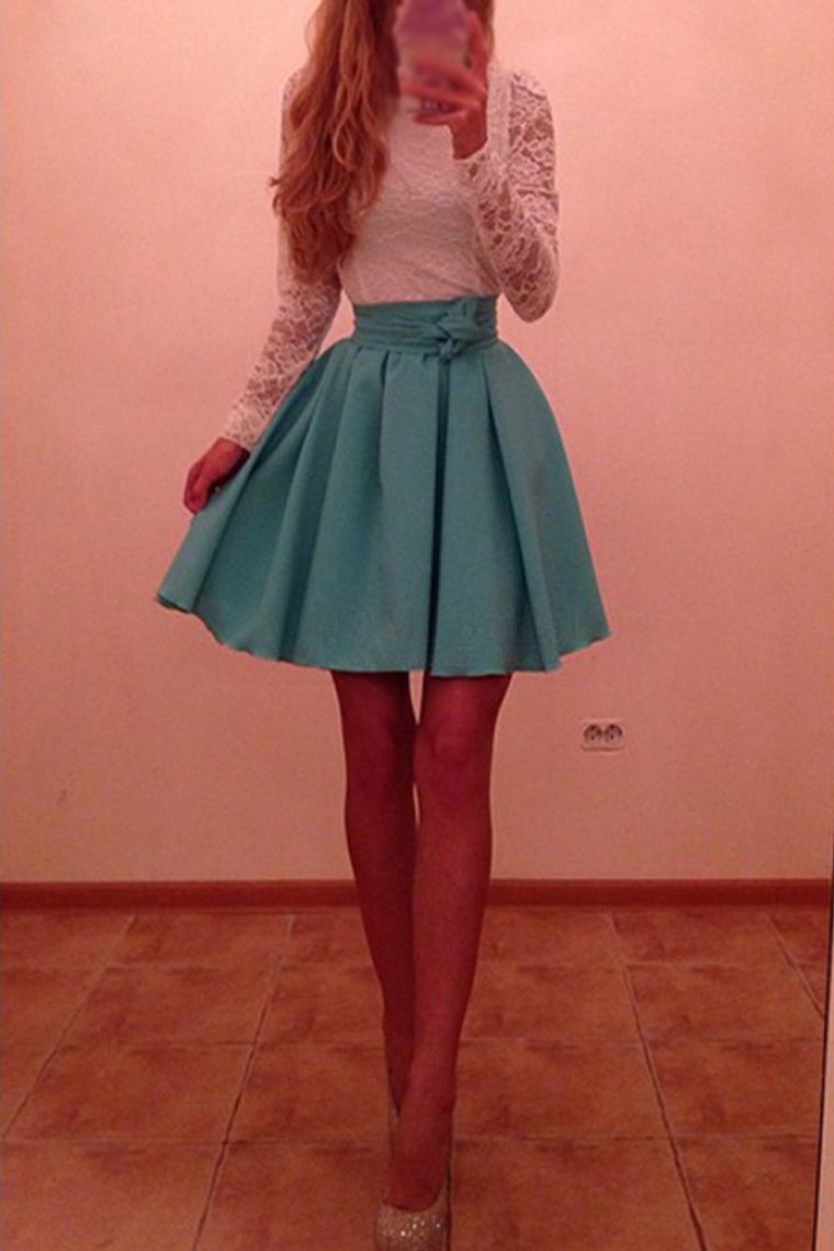 2024 Cocktail Dresses A Line Scoop Long Sleeves Satin & Lace
