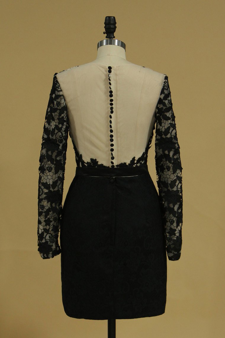 2024 Cocktail Dresses Sheath Lace Short Sheath Long Sleeves