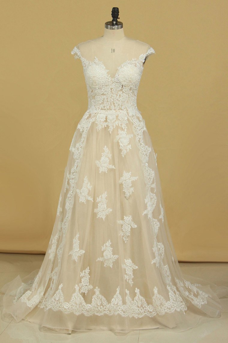 2024 Court Train Scoop A Line Wedding Dresses Tulle With Applique