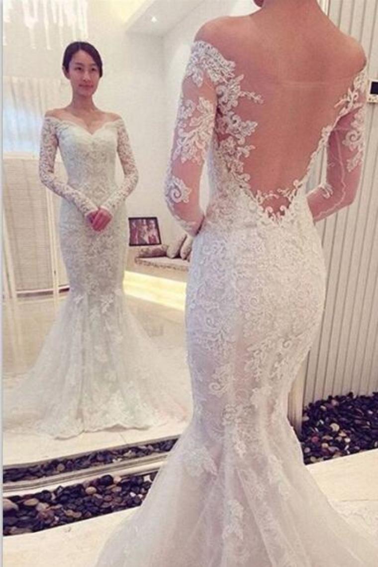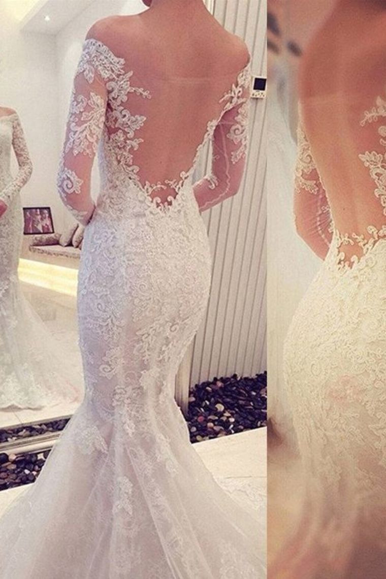 2024 Elegant Mermaid Wedding Dresses Off The Shoulder With Appliques Long Sleeves Zipper Up