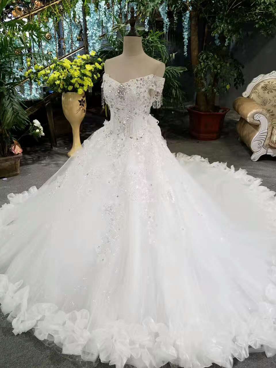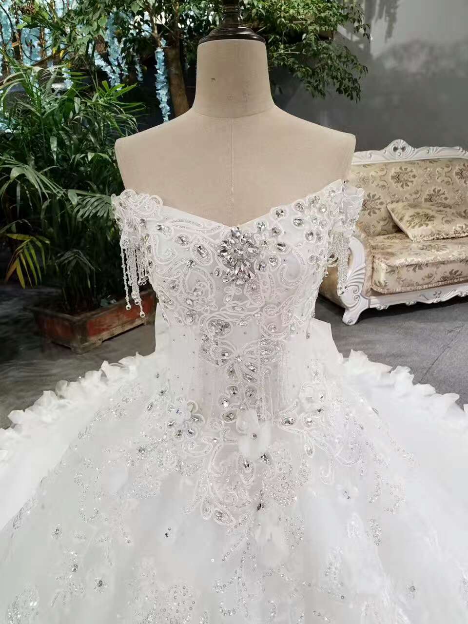 2024 Fantastic Bling Bling Wedding Dresses Off The Shoulder With Appliques And Sequins Lace Up Tulle