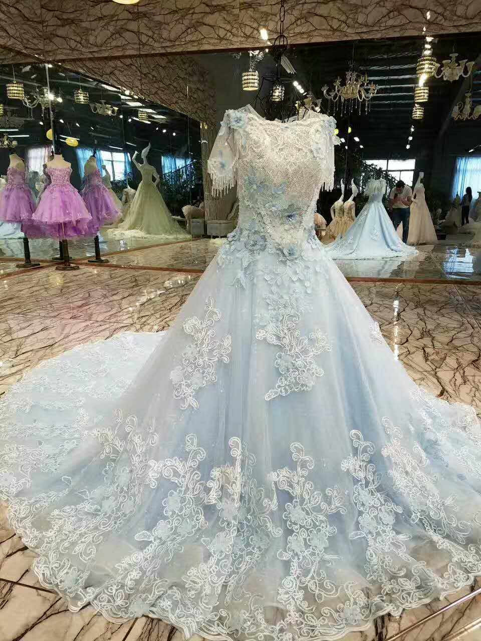 2024 Floral Wedding Dresses Lace Up Back Handmade Flowers Luxury