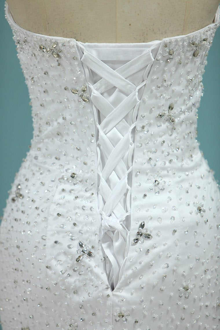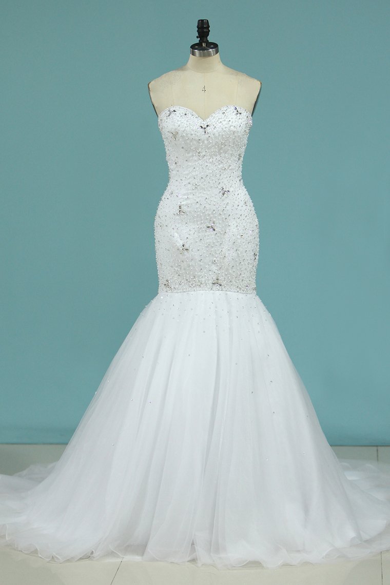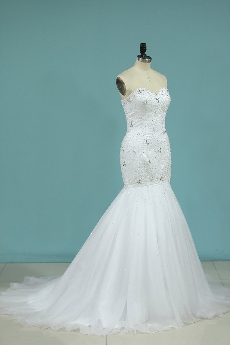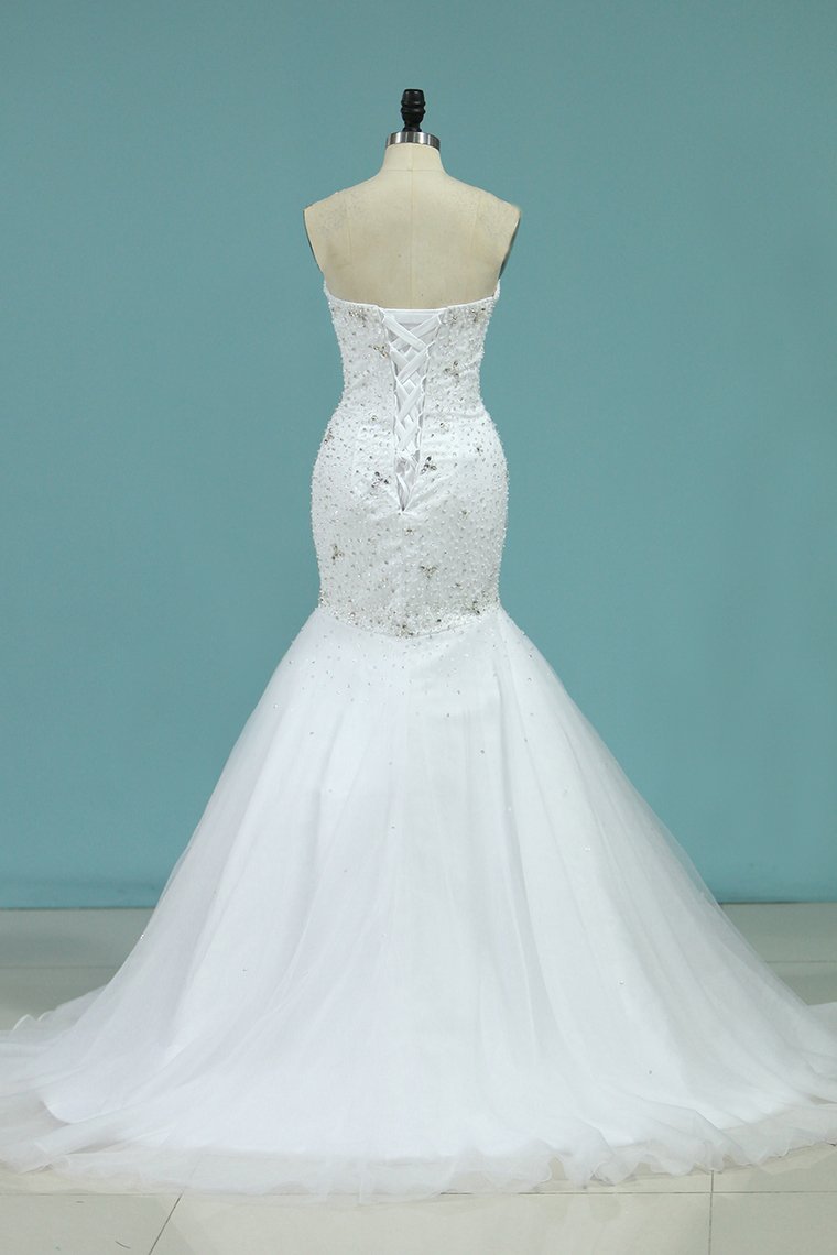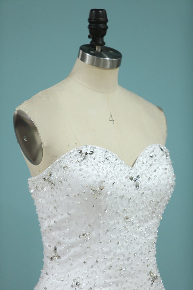 2024 Full Beaded Bodice Wedding Dress Sweetheart With Tulle Skirt Lace Up