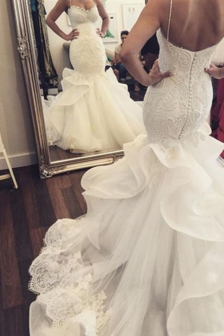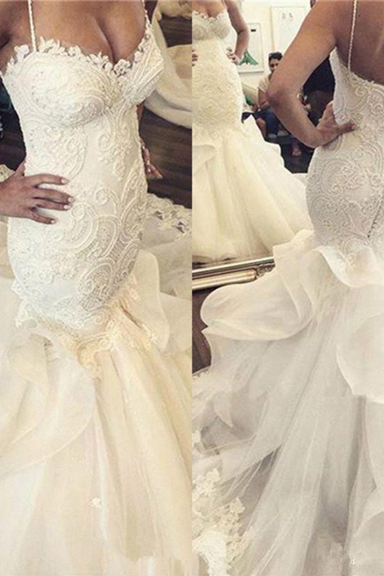2024 Gorgeous Spaghetti Straps Mermaid/Trumpet Wedding Dresses With Covered Button