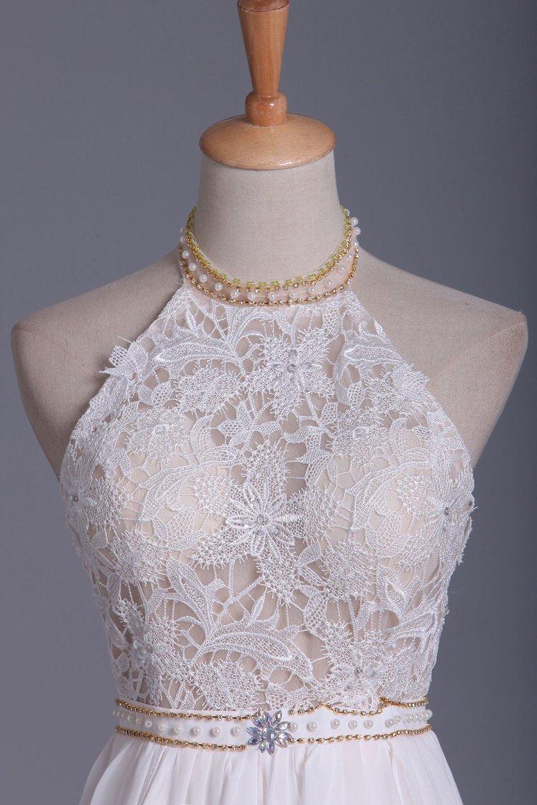 2024 Halter A Line Wedding Dresses Chiffon With Applique