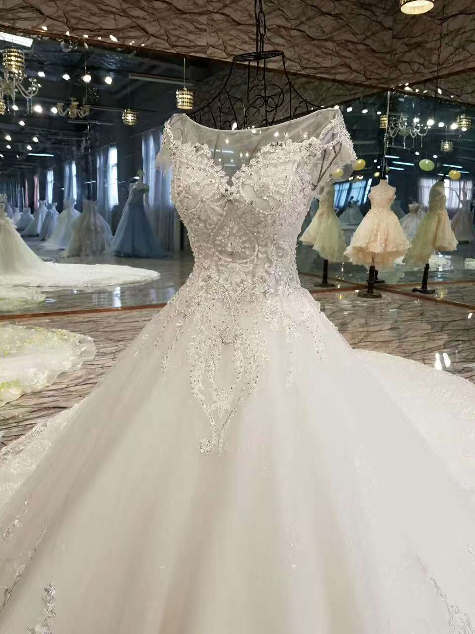 2024 High-End Handmade Tulle Wedding Dresses A Line With Beads Rhinestones Royal Train Lace Up