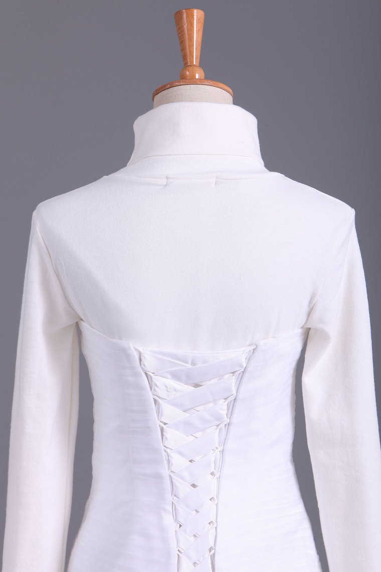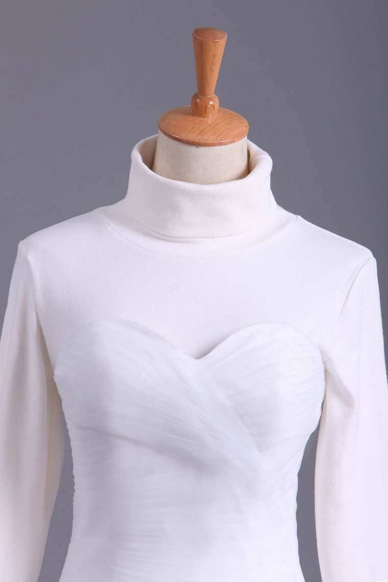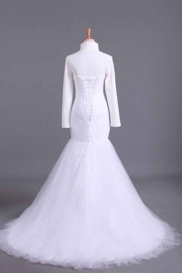 2024 High Neck Mermaid/Trumpet Muslim Wedding Dresses Pleated Bodice With Tulle Skirt Lace Up